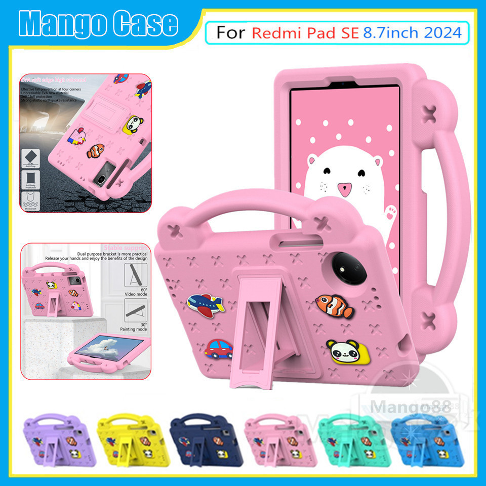 Case For Xiaomi Redmi Pad SE 8.7inch 2024 4G Tablet Kids child safety Handle Stand Casing Safe student Protective Handheld bracket child learning student study shockproof Cover