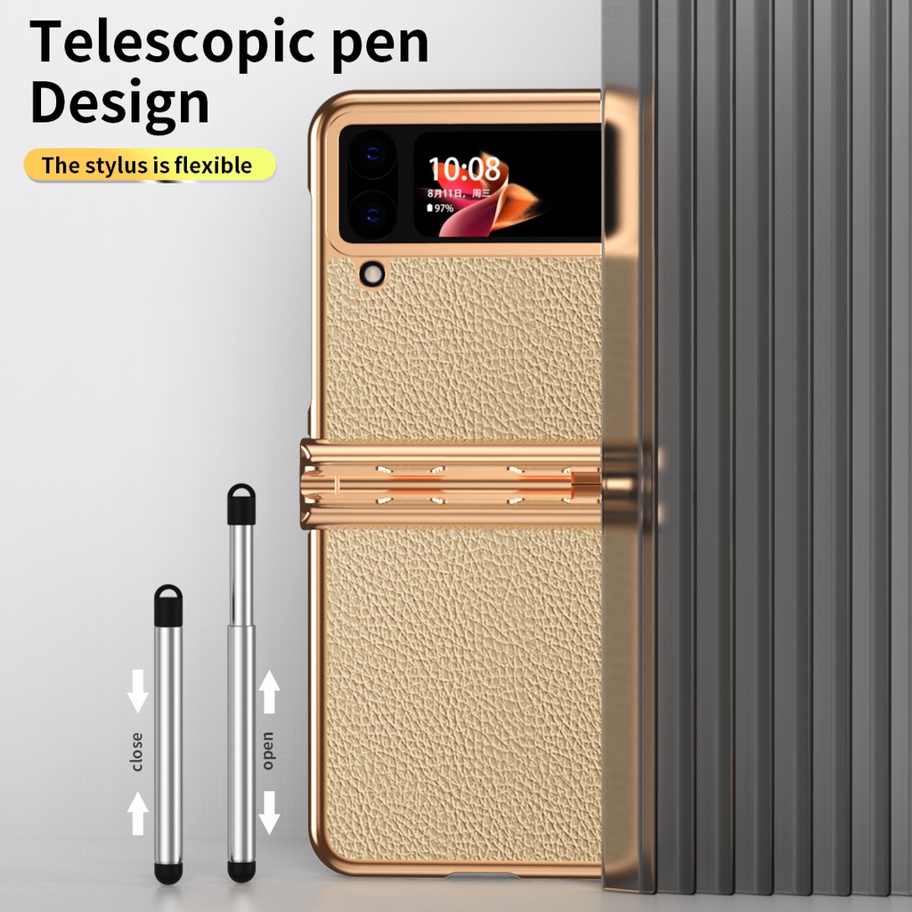 Case for Samsung Galaxy Z Flip 4 Case Luxury with Stylus Capacitance Pen Camera Full Protective Z Flip 4 Cover