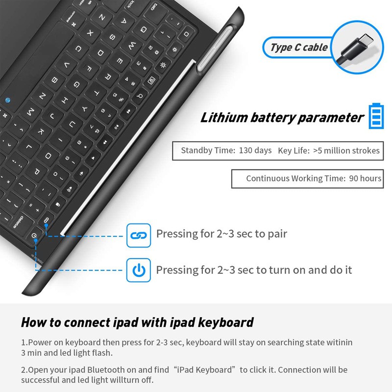 Case with Keyboard For iPad 10.2 7th Gen 8th 9th Generation Wireless Bluetooth Keyboard mouse Cases for iPad Air 3 10.5 2019 iPad Pro 10.5 2017 Cover Casing