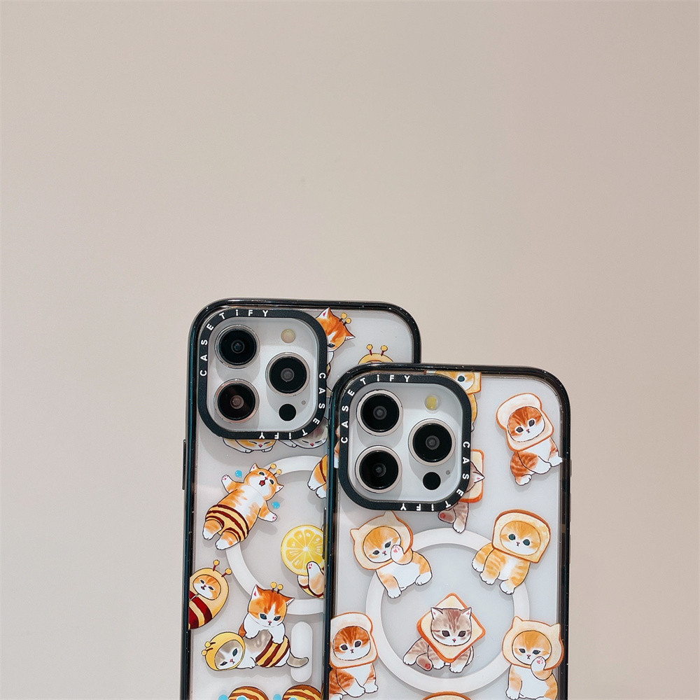 CaseTifg Cute bread Orange Cat Shockproof Magnetic Phone Case With Box For iPhone 16 12 13 14 15 Pro Max 16 Plus Clear Soft Side Silicone Protect Casing Acrylic Hard Cover