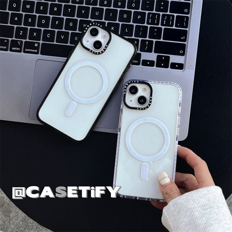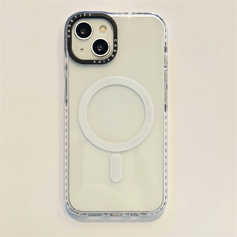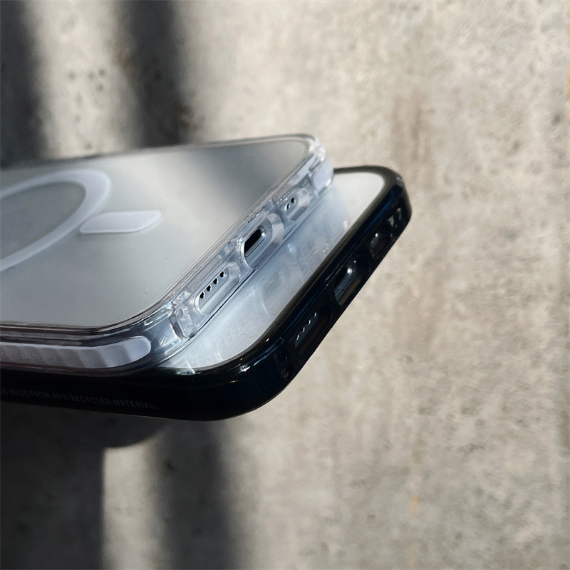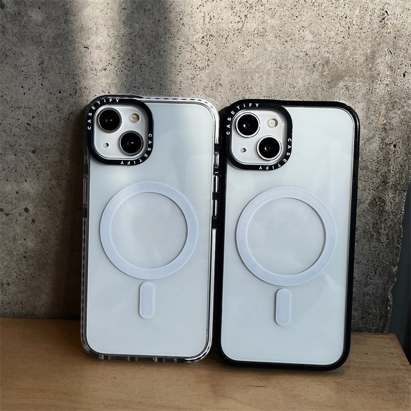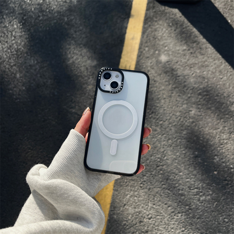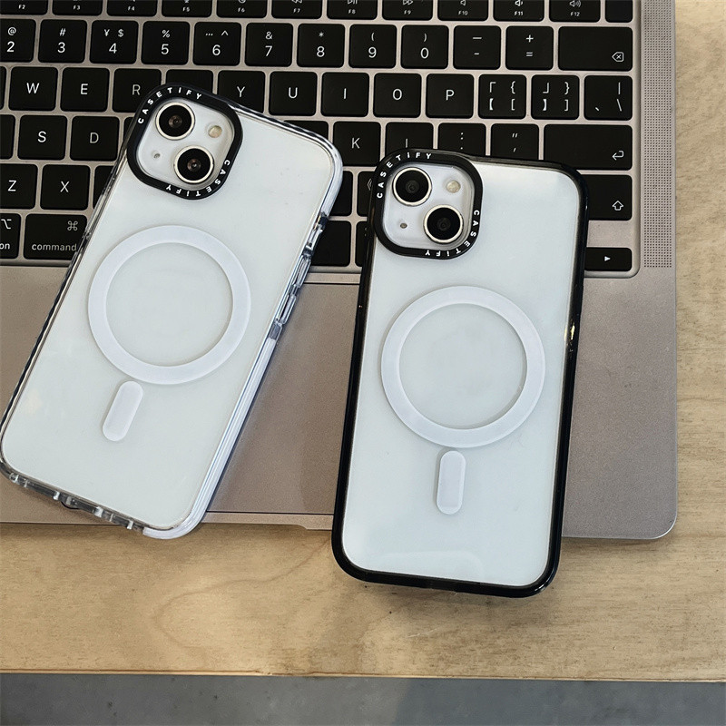 CaseTifg Simple Clear Shockproof Magnetic Charging Phone Case For iPhone 16 11 12 13 14 15 Pro Max 15 14 16Plus Black White Edge Silicone Protect Casing Acrylic Hard Back Cover