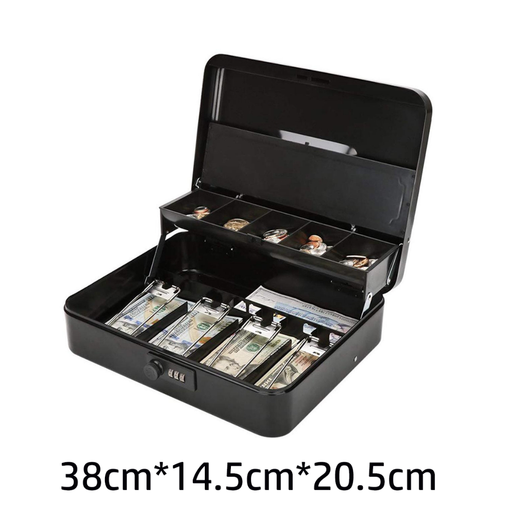 Cash Box Handheld Compartment Tray Cash Lockable Security Cashier Drawer Storage Safety Deposit Box Steel Money Box