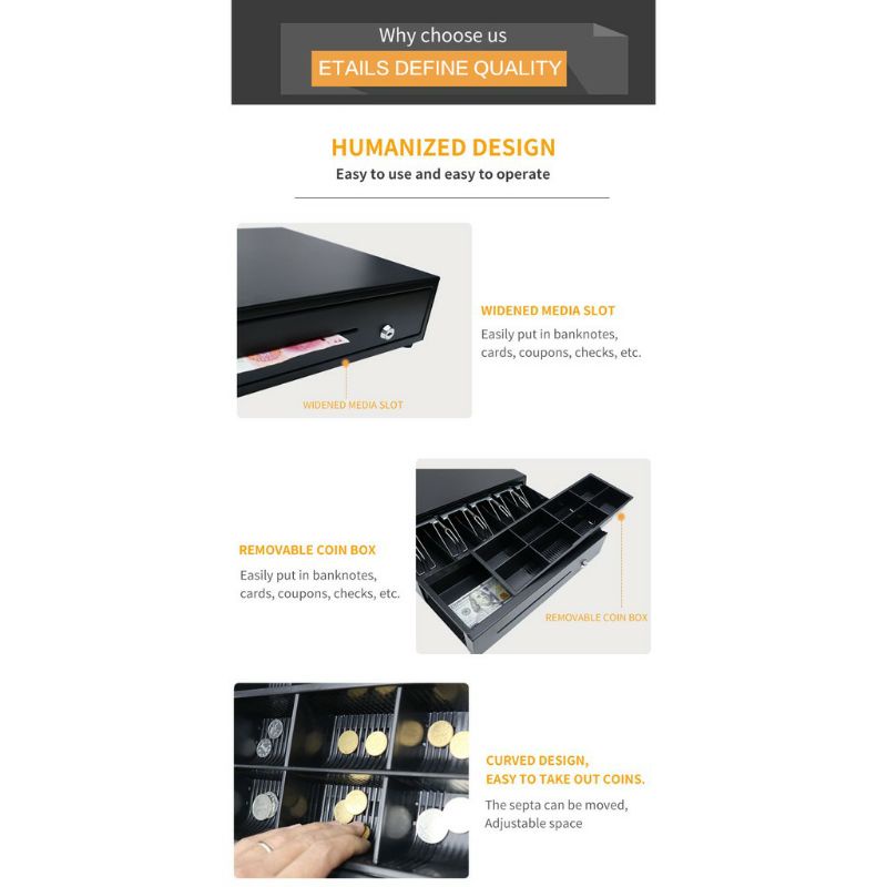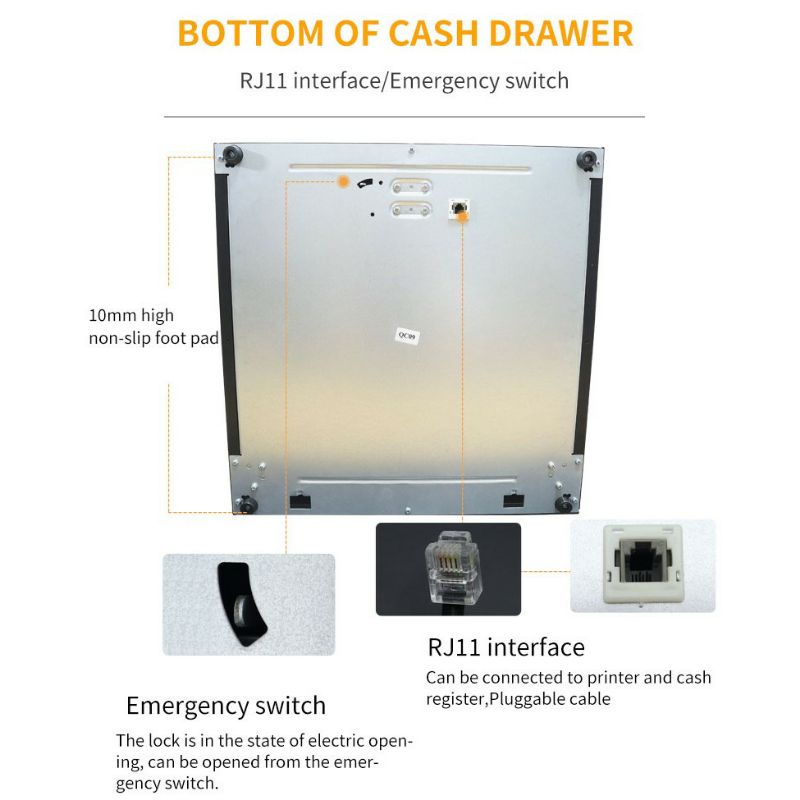 Cash Drawer Cash Tray Retail Store POS System 5 Bill 8 Coin RJ11 Auto Eject Cable to Receipt
