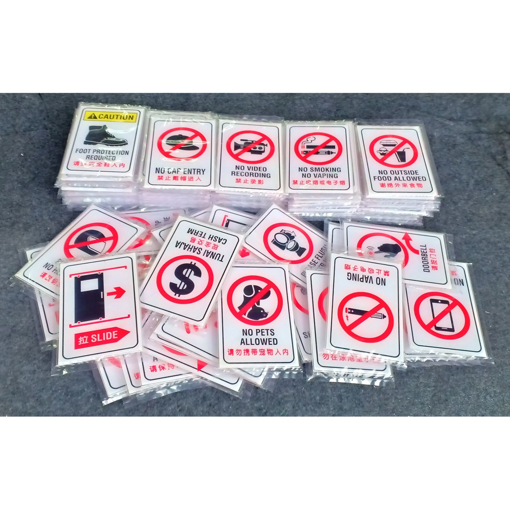 Cash Only. Tunai Sahaja. Cash Term. Fitting Room. Shower Room Sign
