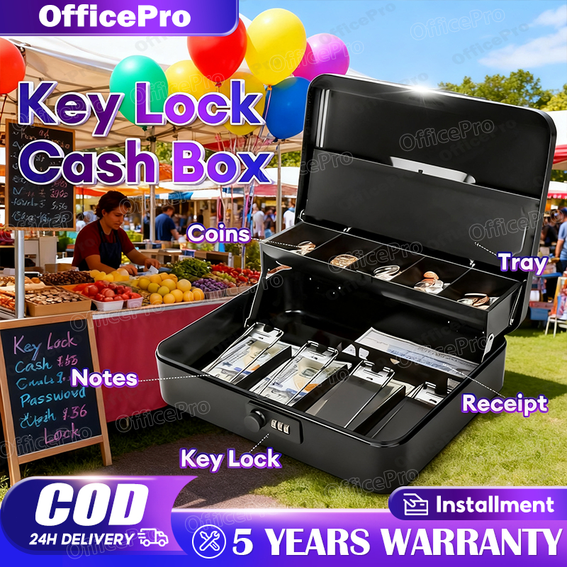 Cash box Handle Lockable coin box Pink Compartment Tray money box Safe Money Coins Bill Key Security Cashier Drawer