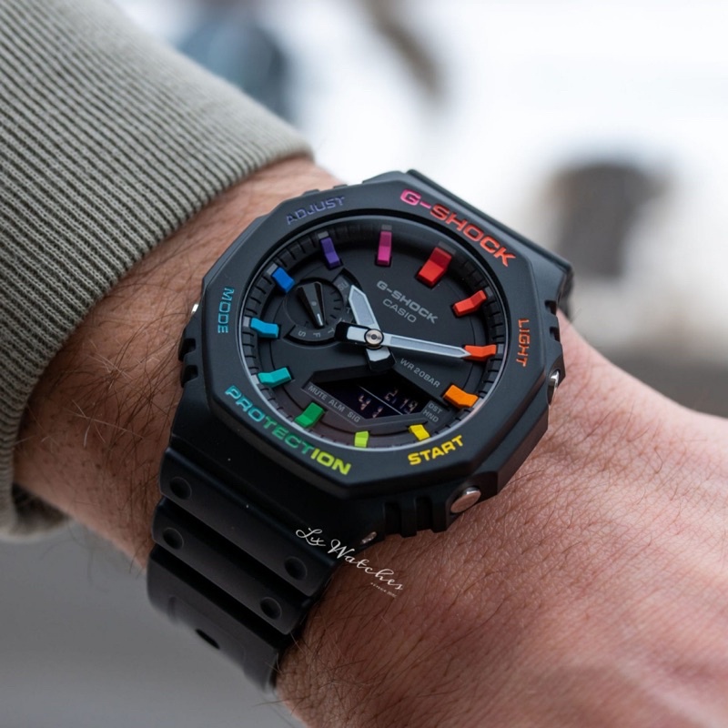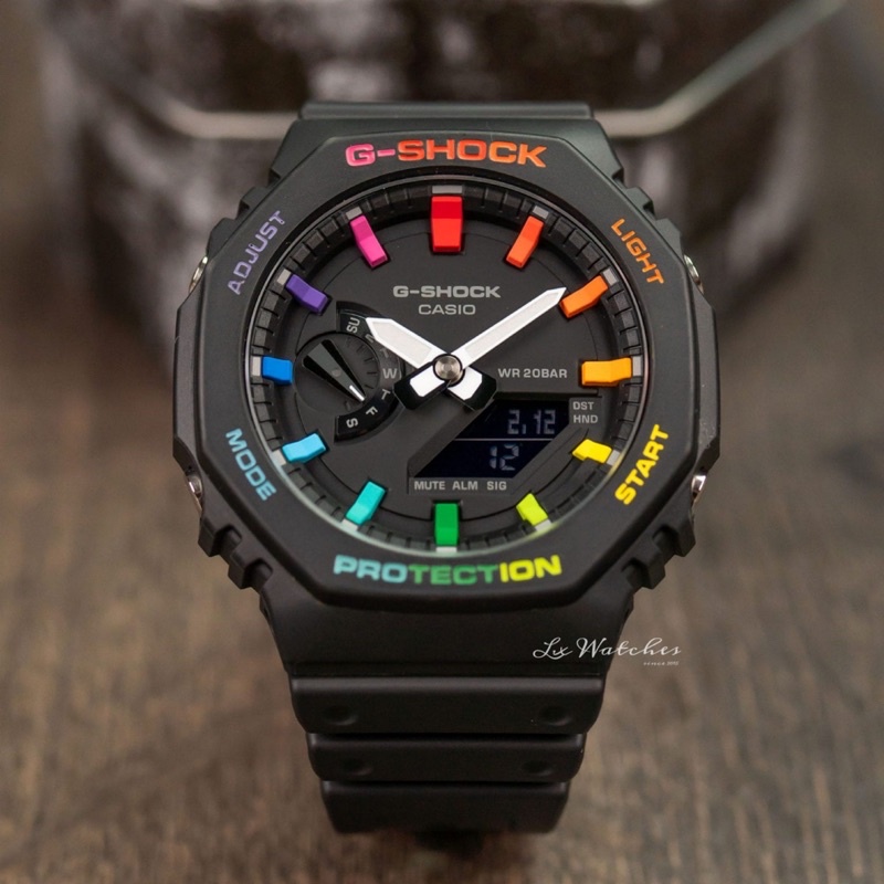 CasiOak Casio G-shock AP Royal Oak Style Band & Bezel custom case GA-2100-1A GA-2100 Black Rainbow