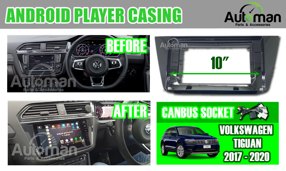 Casing Android Volkswagen Tiguan 2017 - 2020 Dashboard Audio Android Player Radio FM Casing Frame (Canbus Socket)