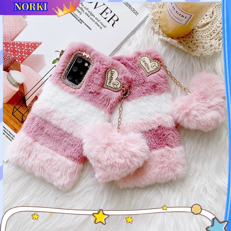 Casing For Xiaomi Redmi 14C 13C 12C 10 10C 10A 9A 9C 9T A3 Bling Love Plush Warm Cute Furry Fluffy Fur Case Cover