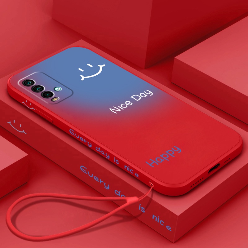 Casing Redmi 9T redmi 6A 8 9 REDMI 9A 9C mobile phone case liquid silicone soft case side contrast color smiley face shockproof all-inclusive cute couple ultra-thin ins phone case