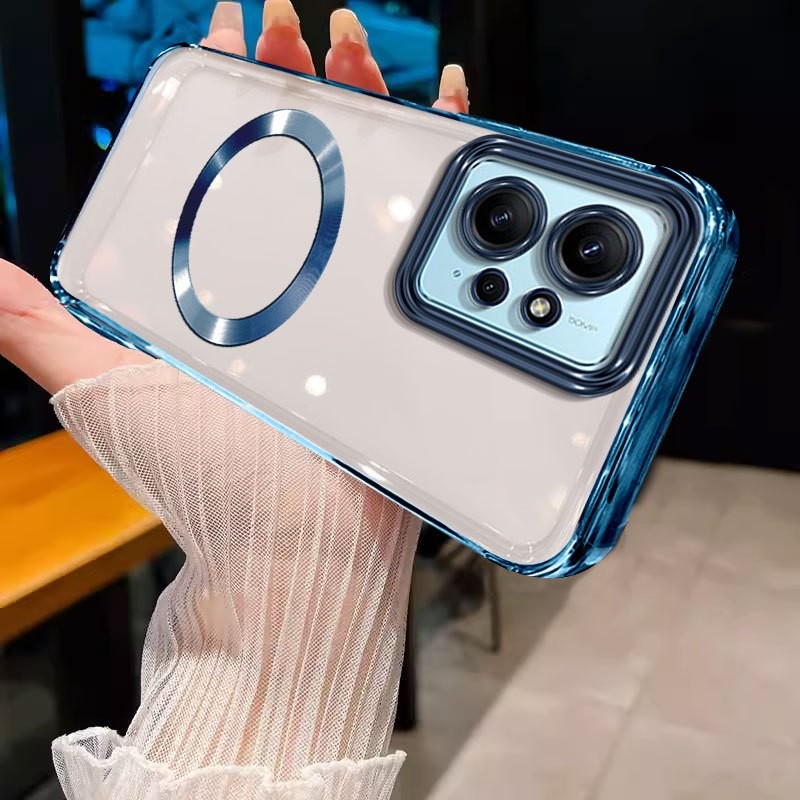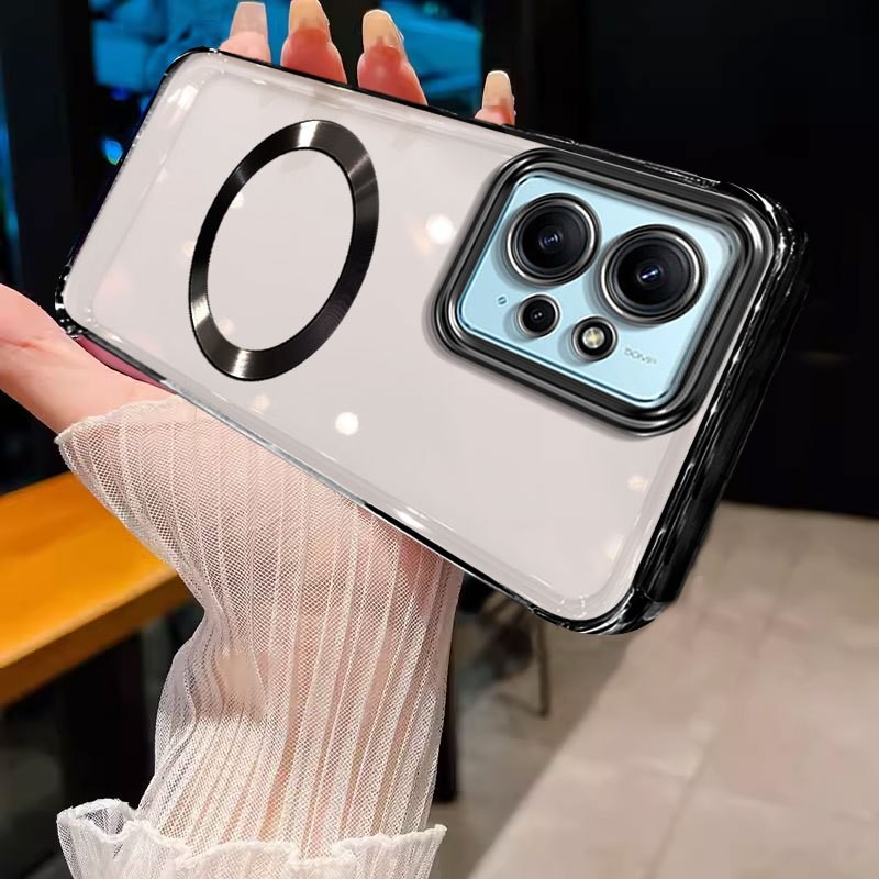 Casing Redmi note 12 4g Redmi 12 Phone case Soft gold border transparent bumper with magnetic suction ring shock absorber protector
