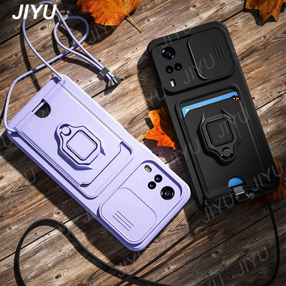 Casing Vivo Y20 Y20i Y20s G Y12A Y12s Y51 2020 Y31 2021 Soft Cover Slide Camera Lens Card Slot Crossbody With Lanyard