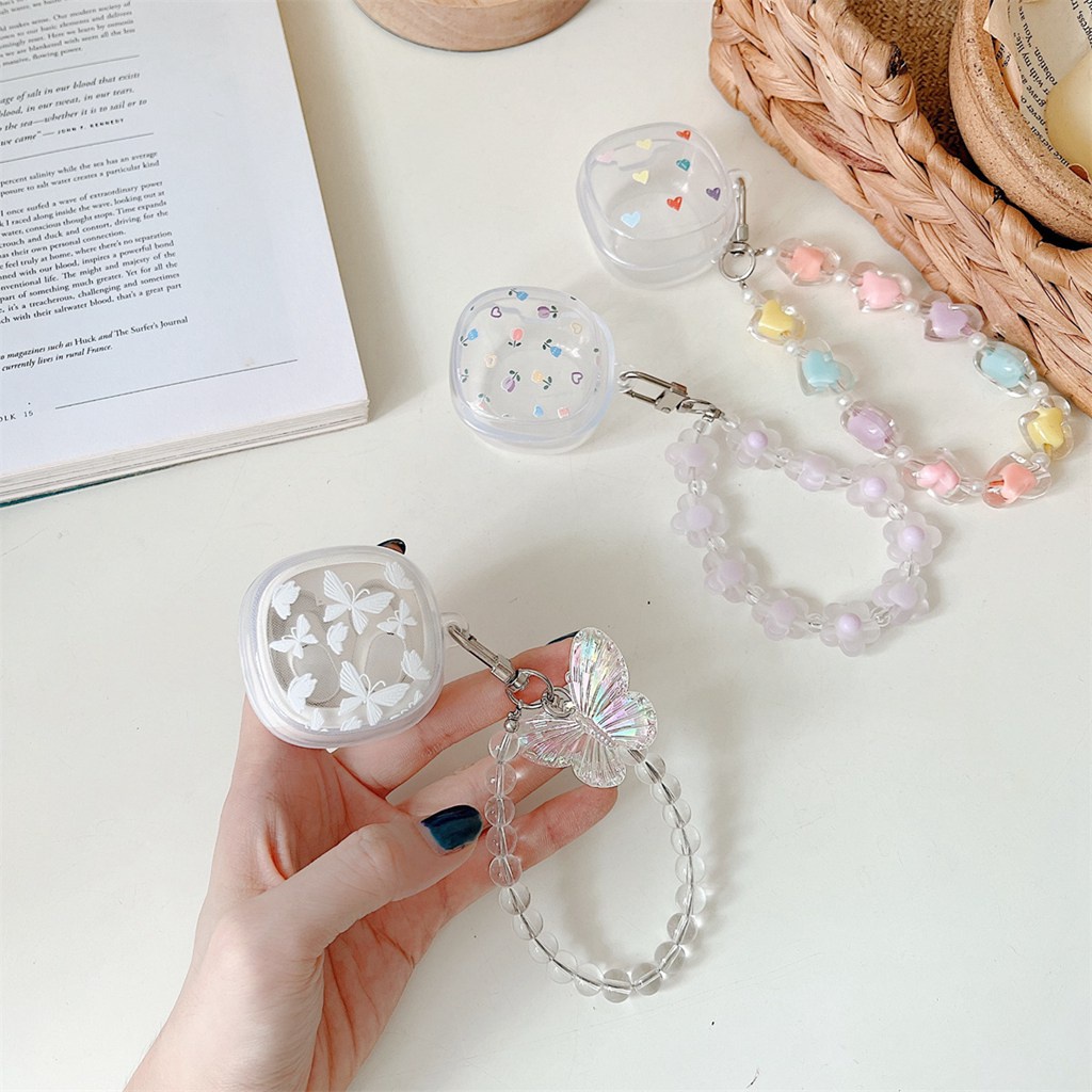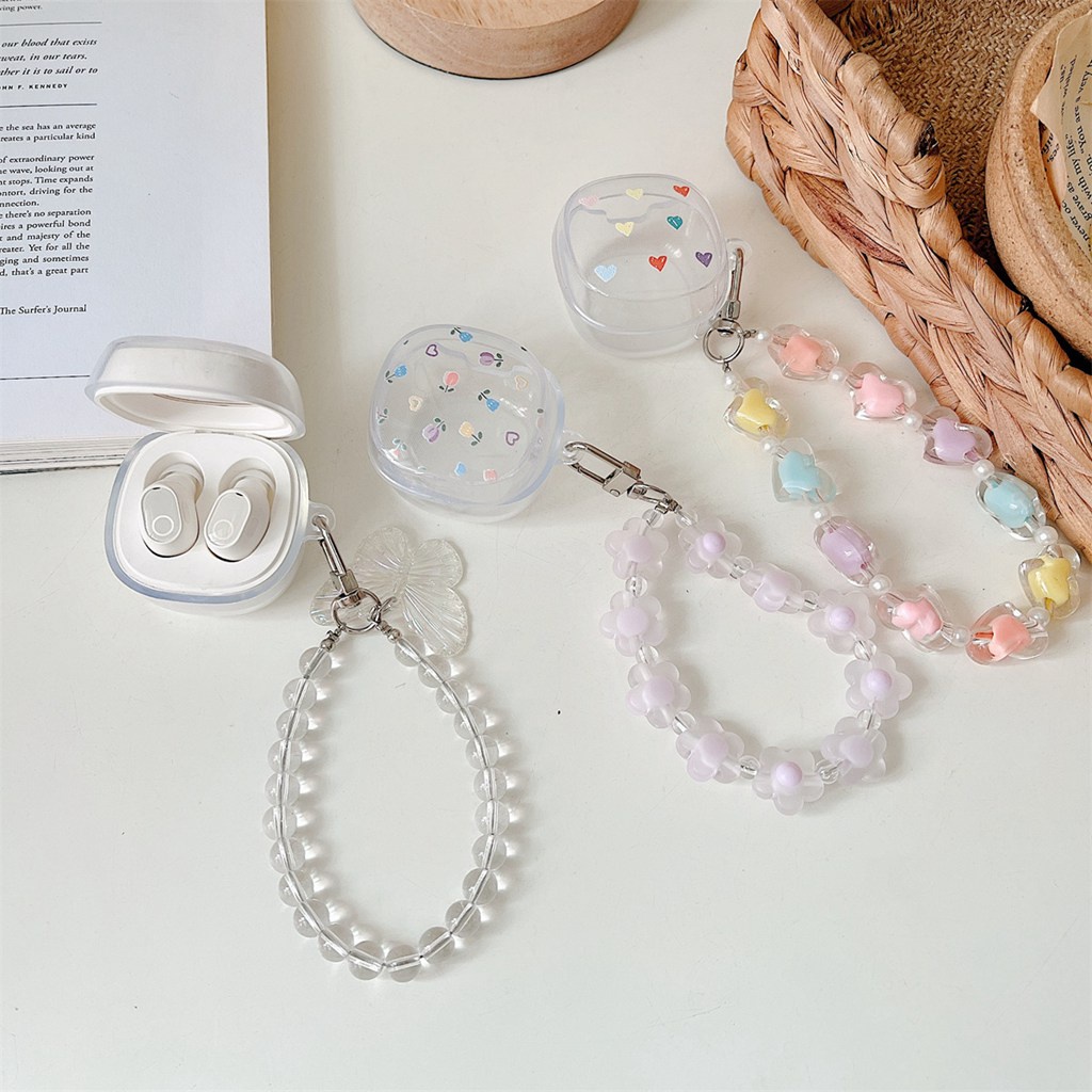 Casing for Baseus WM01 WM02 Butterfly Flower Love Heart Bluetooth TPU Clear Soft Earphone Case with Hand Chain Bracelet Wireless Headset Protective Cover