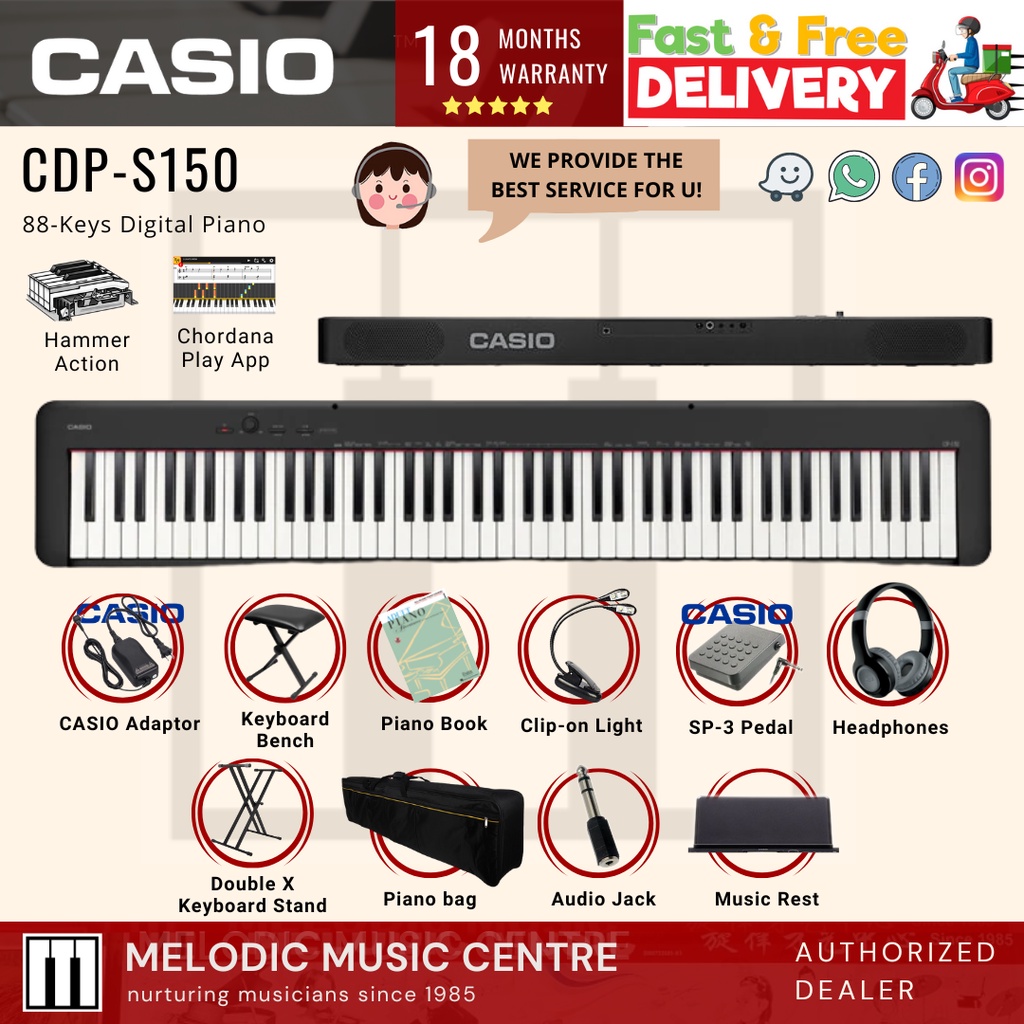 Casio CDP-S150 88 Keys Digital Piano Keyboard Package with Keyboard Stand, Bench, Pedal, Book (CDPS150 CDP S150)