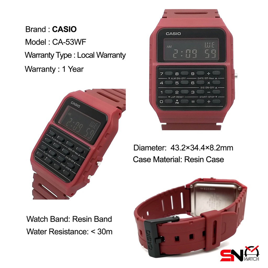 Casio Calculator Watch CA-53W CA-53WF Digital Resin Band Unisex Watch Jam Tangan Unisex