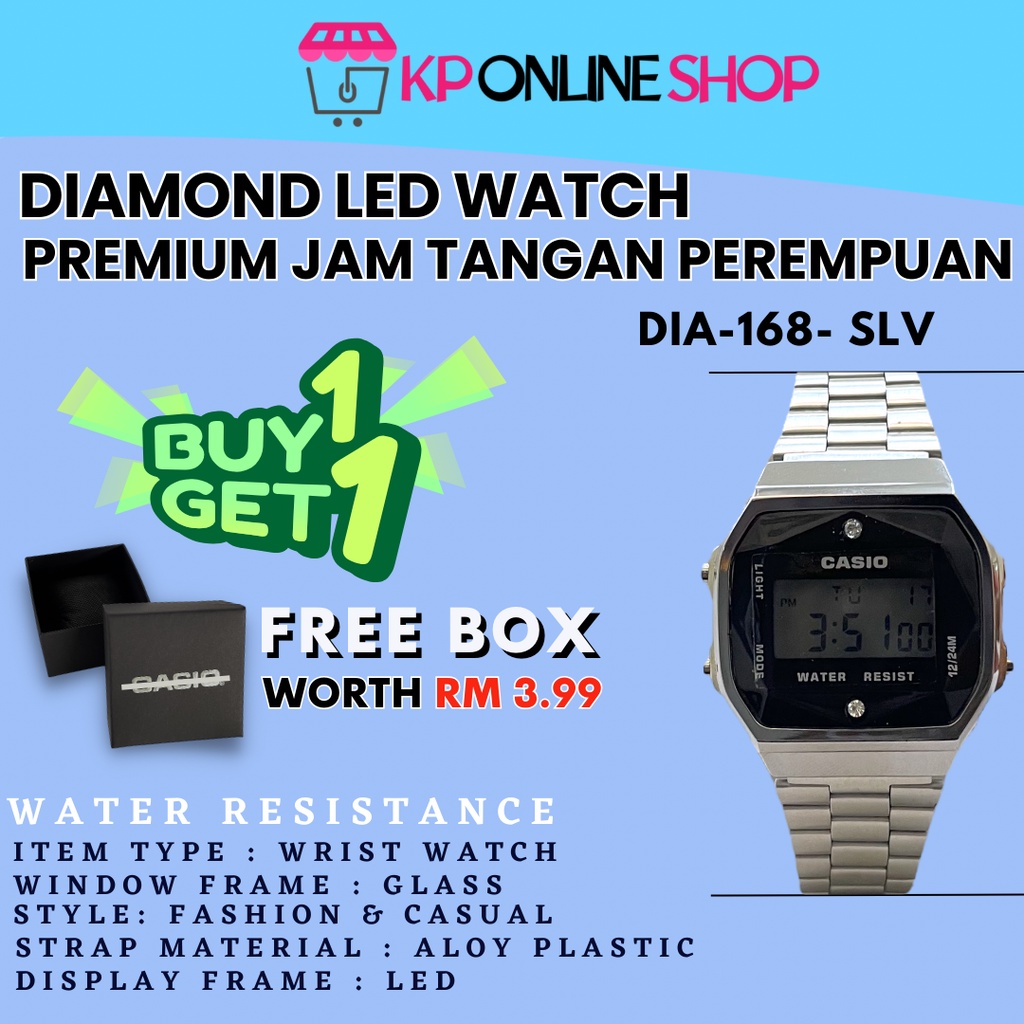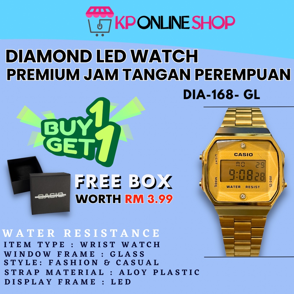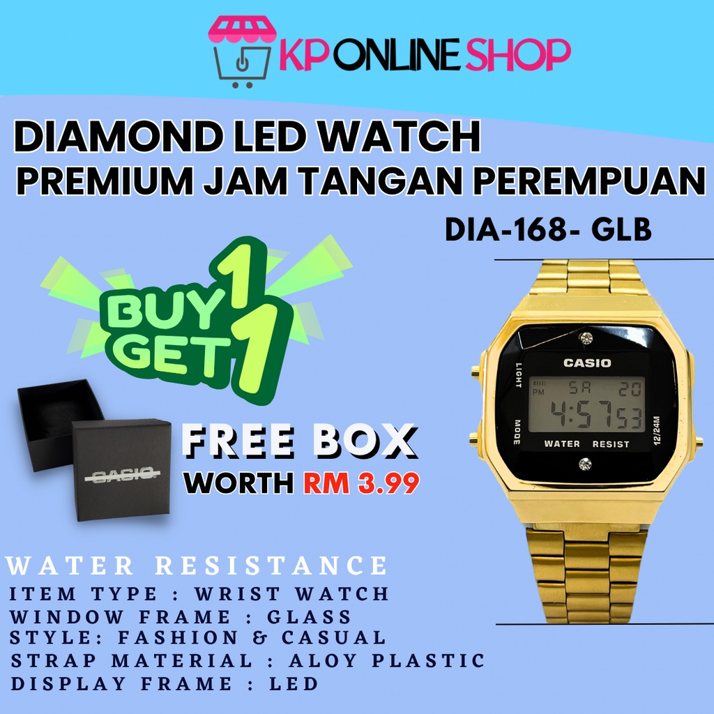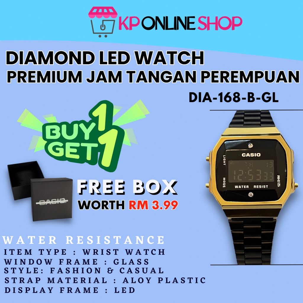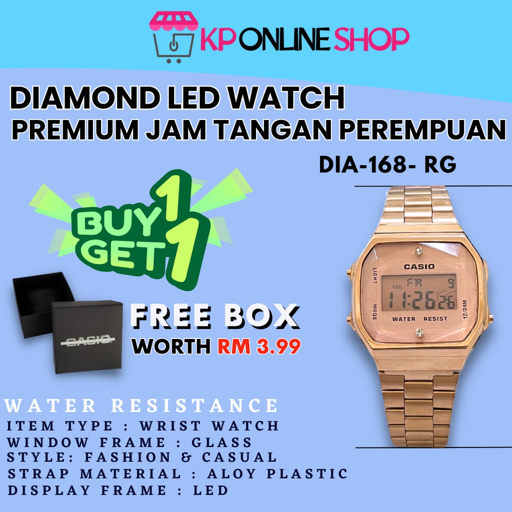 Casio DIAMOND 168 black / rose gold viral Di Malaysia harga promosi NEW JAM TANGAN WOMEN MEN READY STOCK
