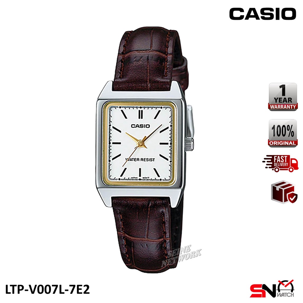 Casio LTP-V007L Square Face Fashion Quartz Analog Leather Band Women Watch Jam Tangan Perempuan