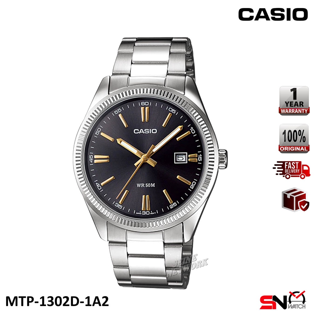 Casio MTP-1302D MTP-1302PD Date Display Fluted Bezel Quartz Analog Stainless Steel Band Men Watch Jam Tangan Lelaki