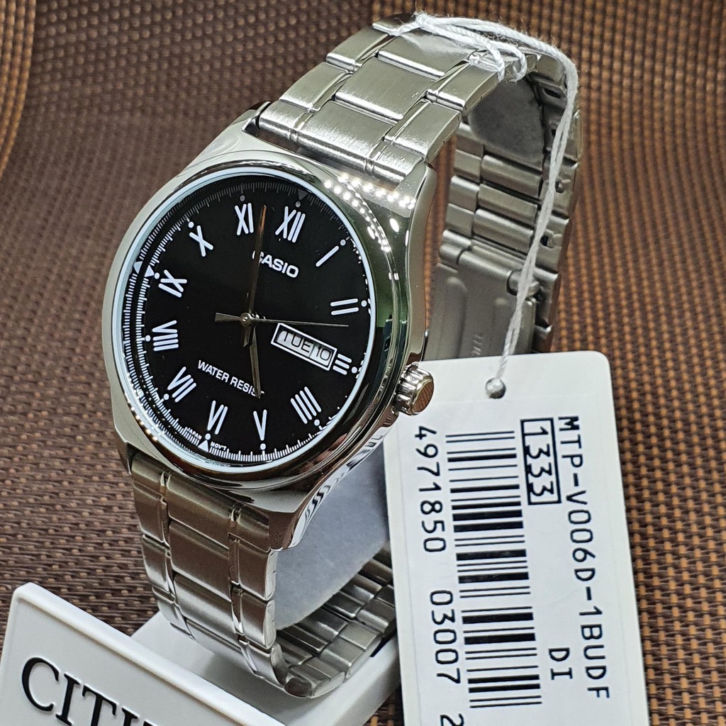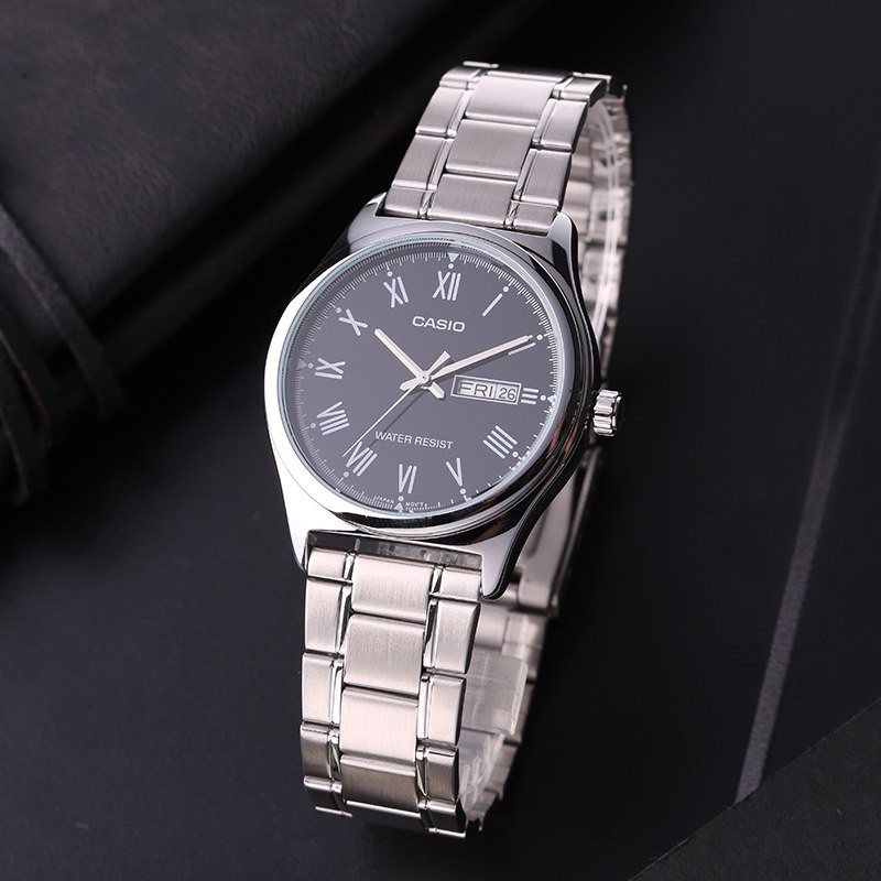 Casio MTP-V006D-1B Analog Men Black Dial Stainless Steel Day Date Quartz Watch