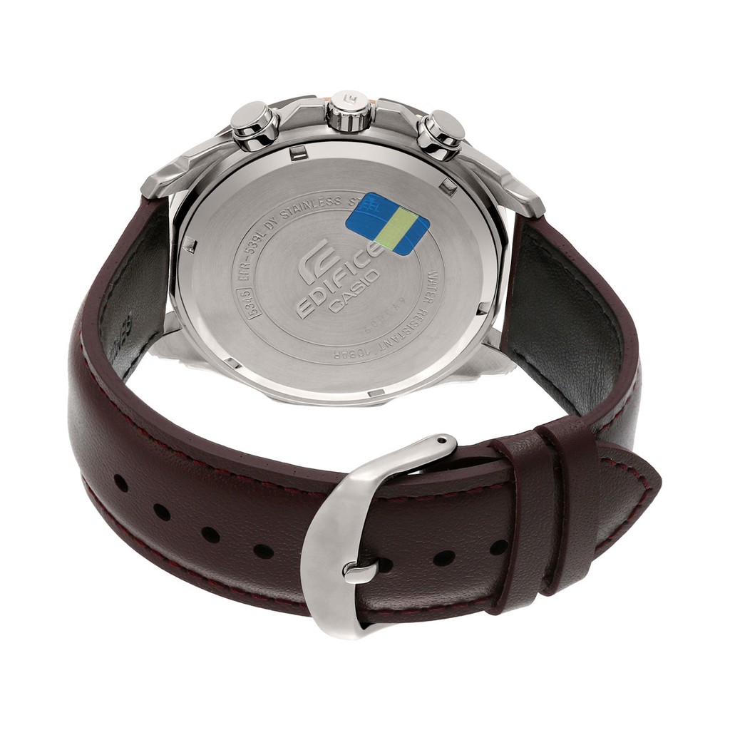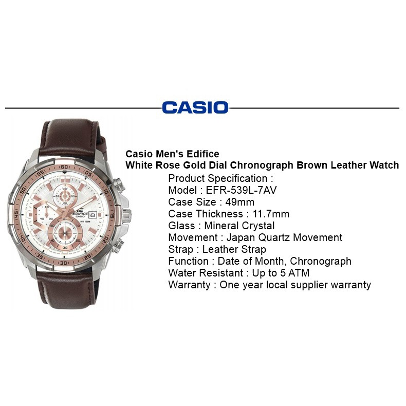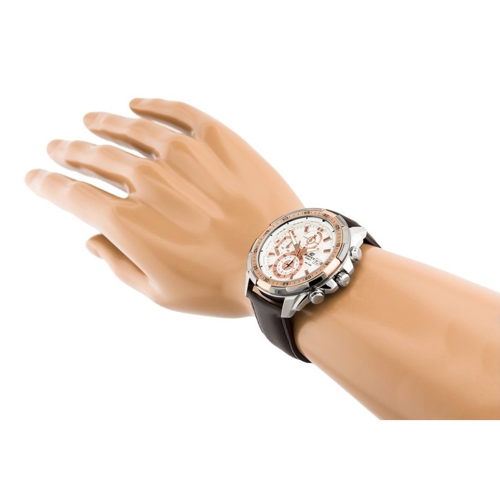Casio Men Edifice White Rose Gold Dial Chronograph Brown Leather Watch For Men Jam Tangan Lelaki