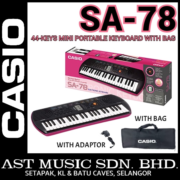 Casio SA78 Portable Mini Keyboard with Adaptor and Bag - Pink ( SA-78 / SA 78 )