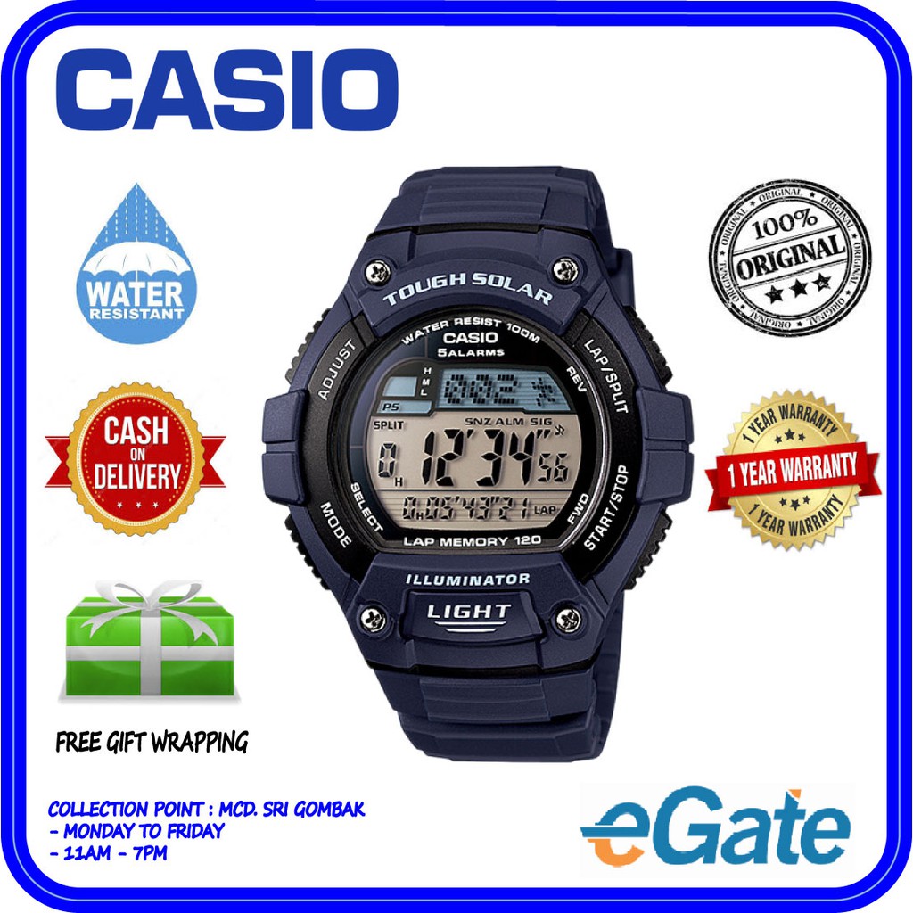 Casio W-S220-2AV Men Digital Tough Solar LED Light Sporty LAP Memory Blue Watch