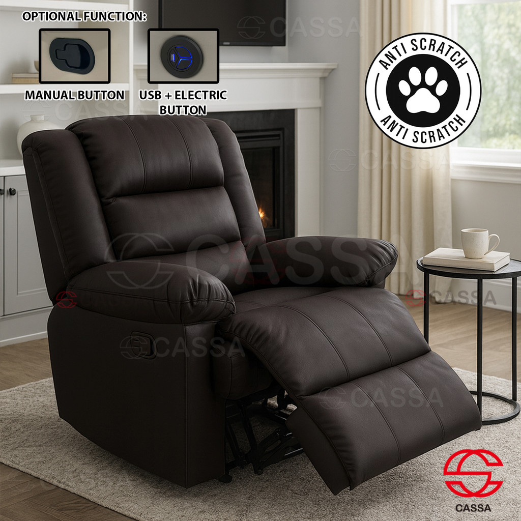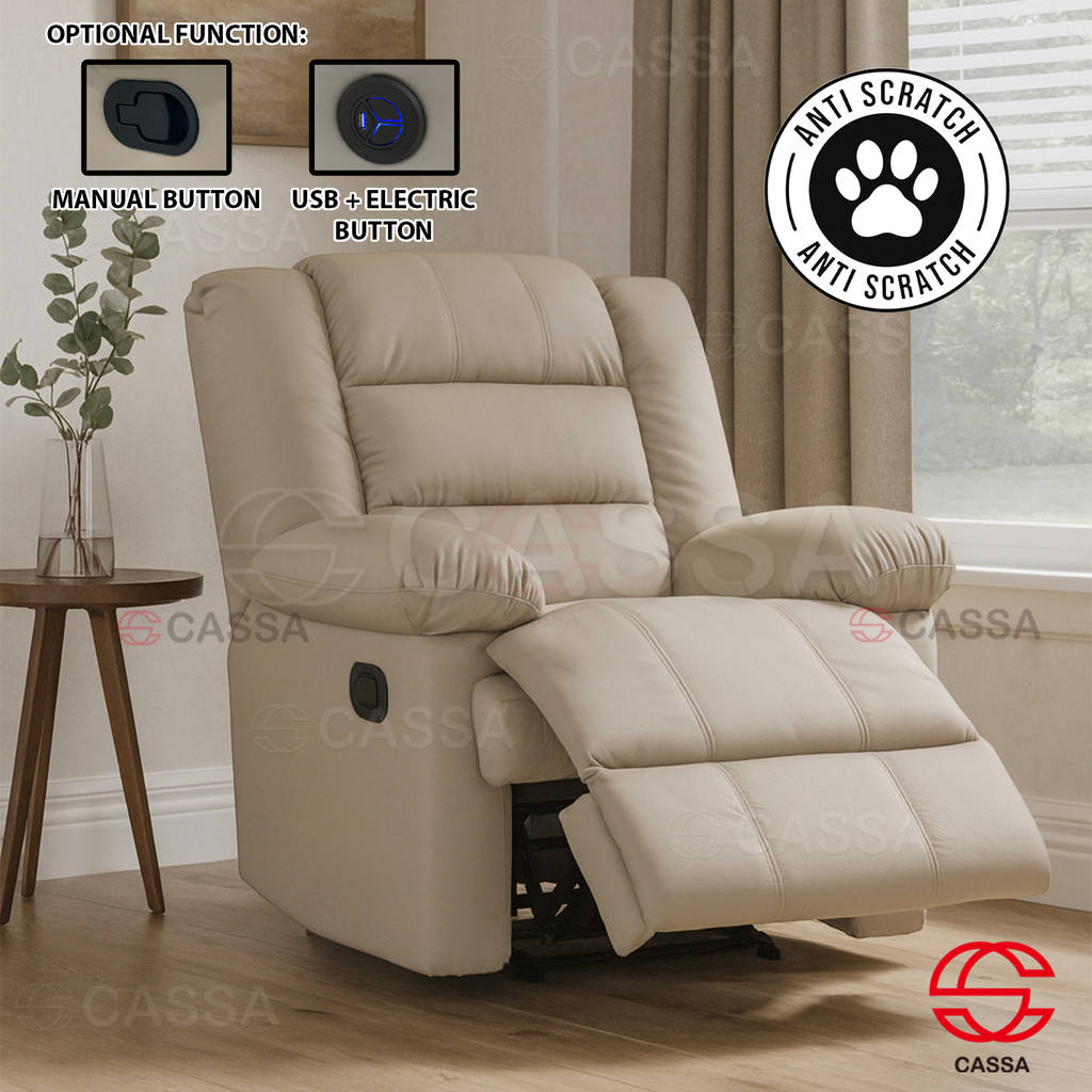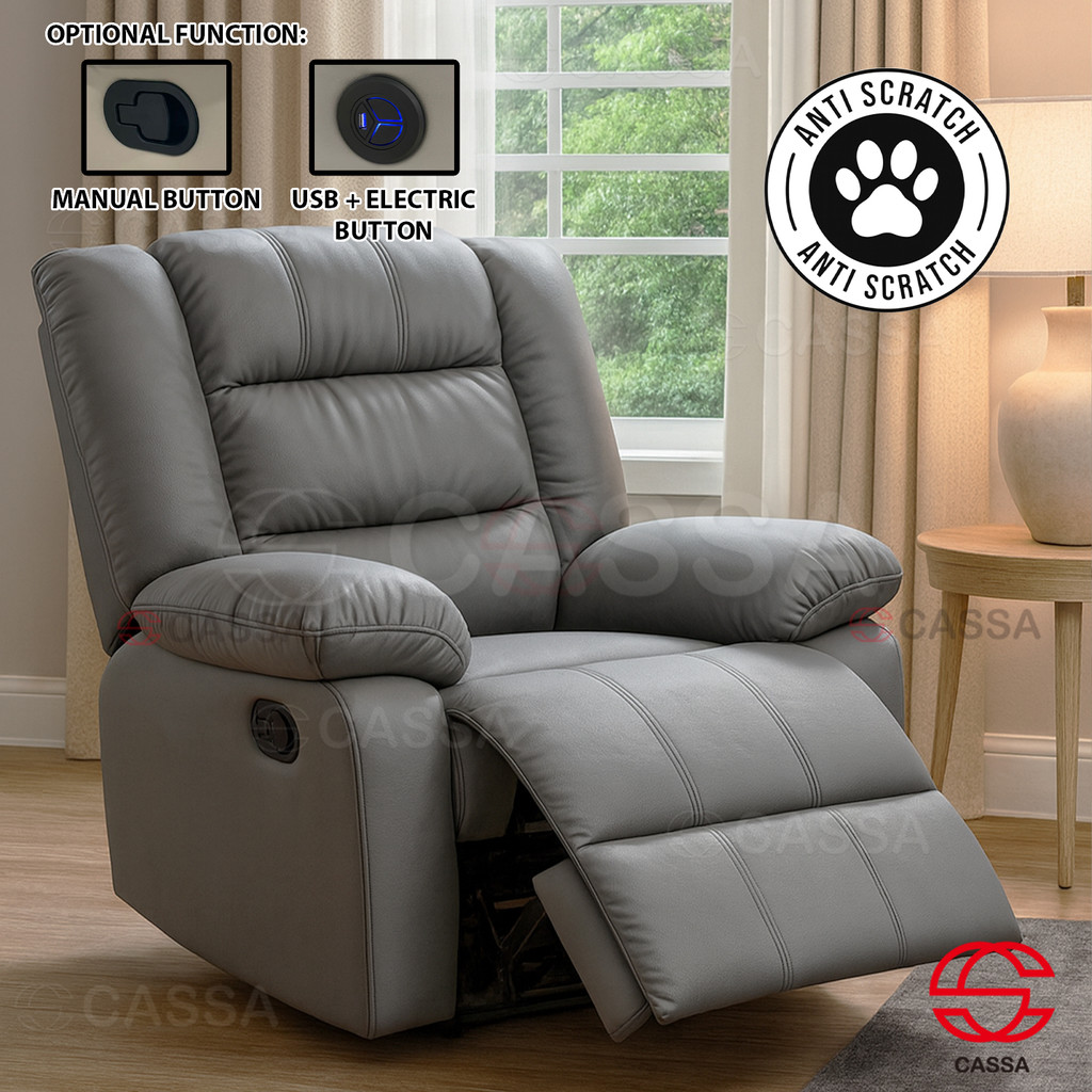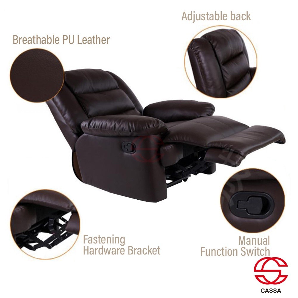 Cassa Altis PU Leather/Fabric Recliner Armchair Lounge Chair Sofa Reclining Ergonomic