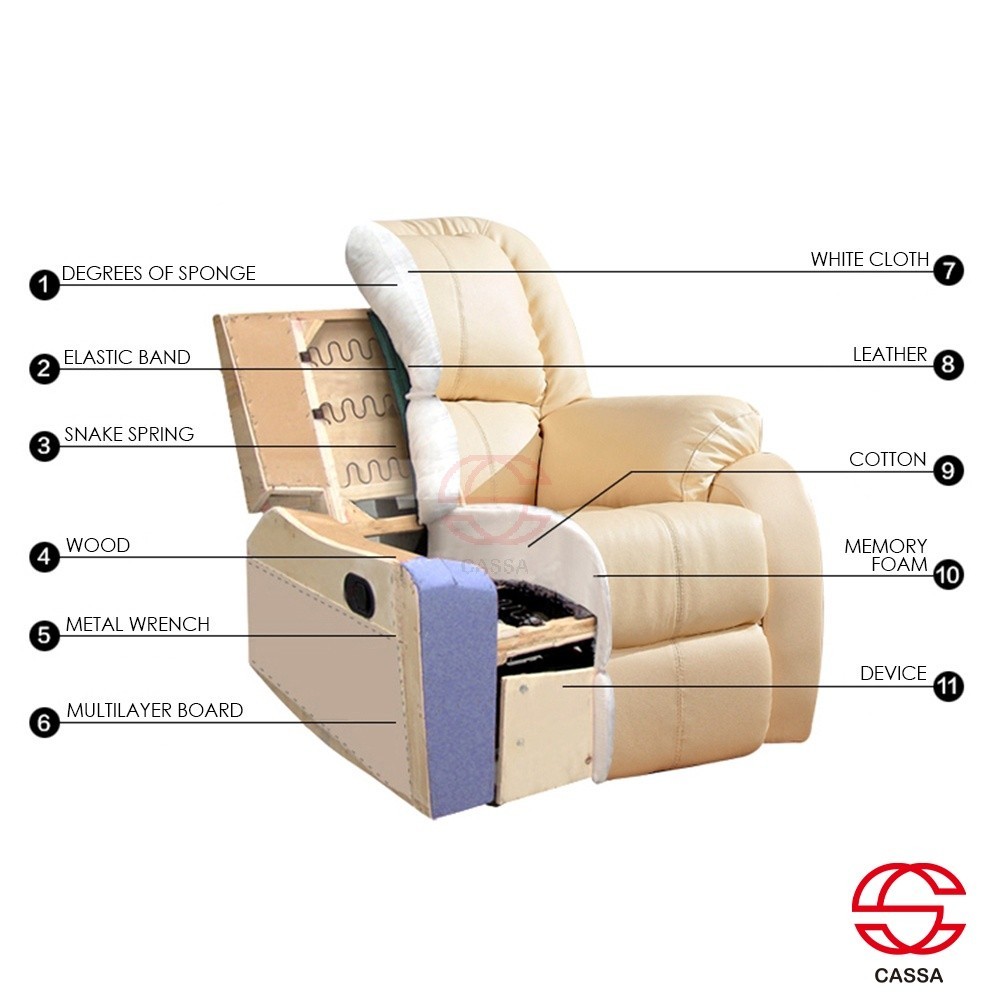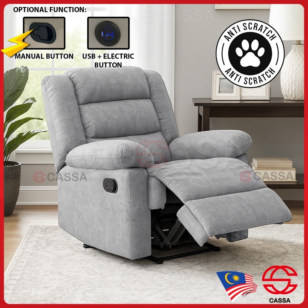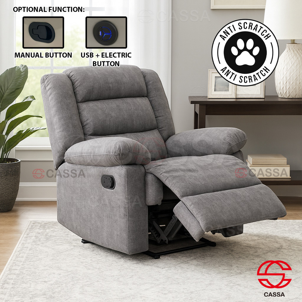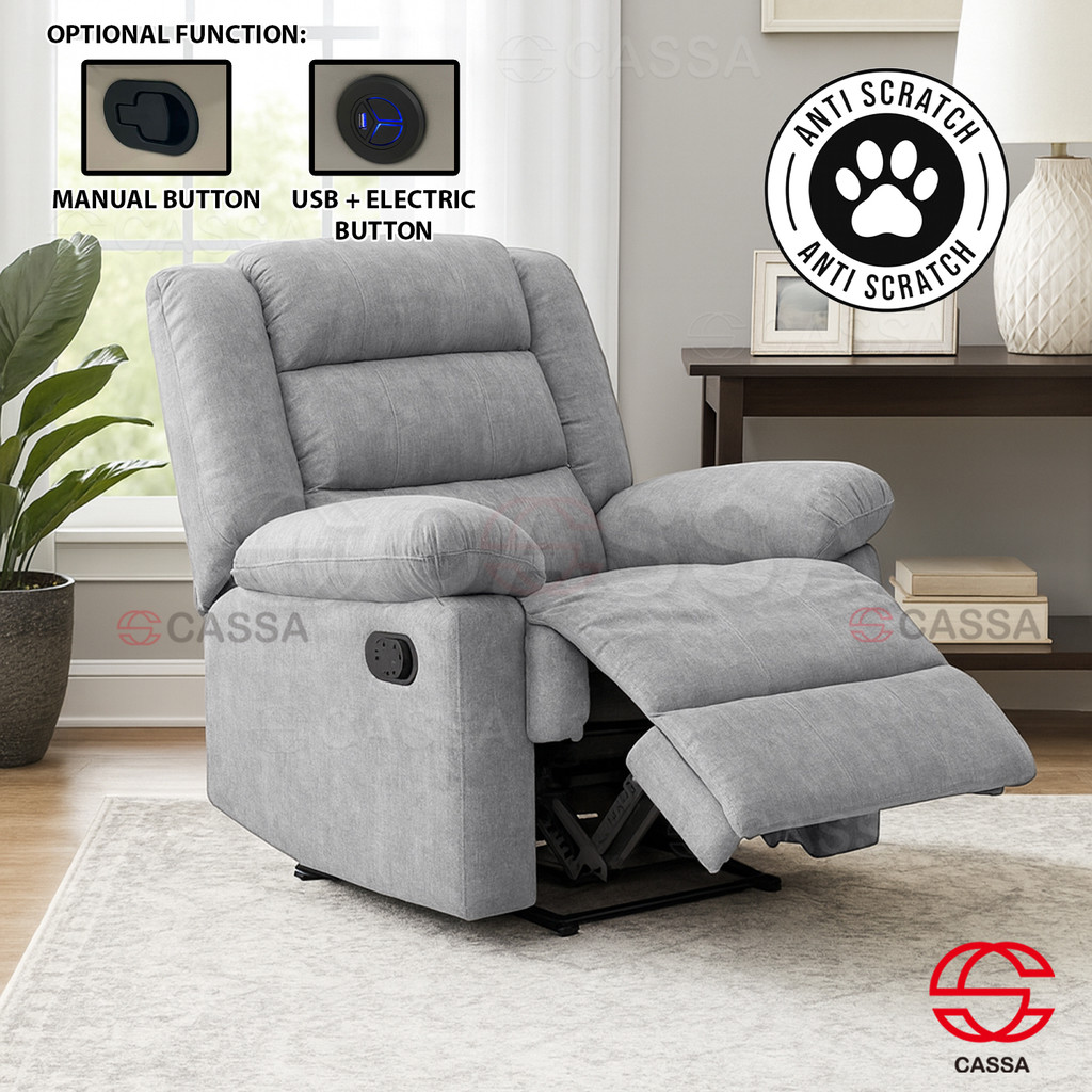 Cassa Altis PU Leather/Fabric Recliner Armchair Lounge Chair Sofa Reclining Ergonomic