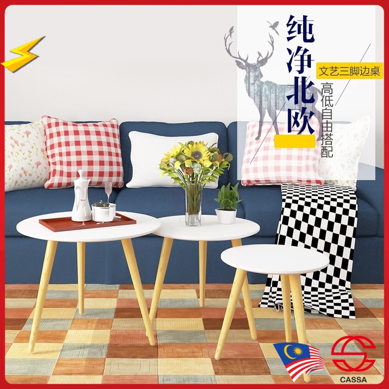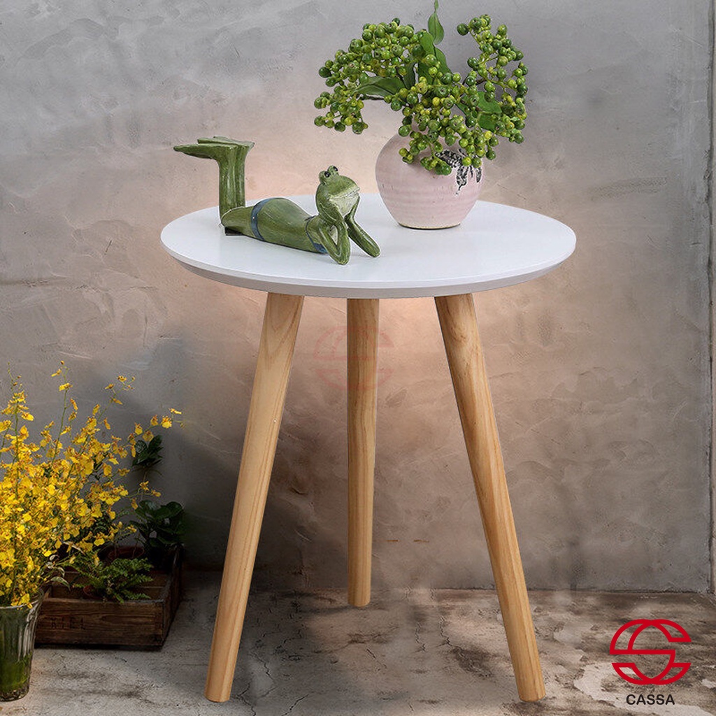 Cassa Oslo Simple Modern Magazine Round Coffee Table Side Table with Natural Wood Legs