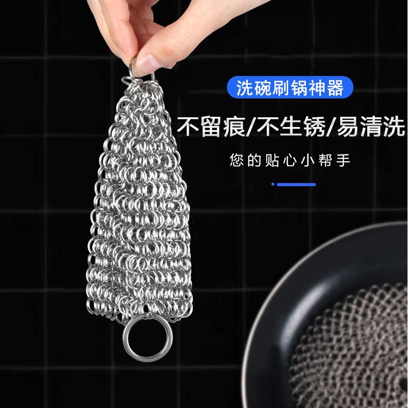 Cast Iron Cleaner, Premium 316 Stainless Steel Cast Iron Skillet Chainmail Scrubber for Cast Iron Pan Pre-Seasoned Pan Dutch Ovens Waffle Iron Pans Scraper Cast Iron