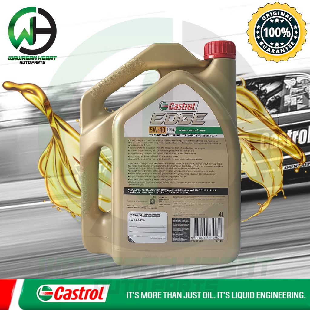 Castrol Edge 5w40 Fully Synthetic Engine Oil 4L [ Original ]