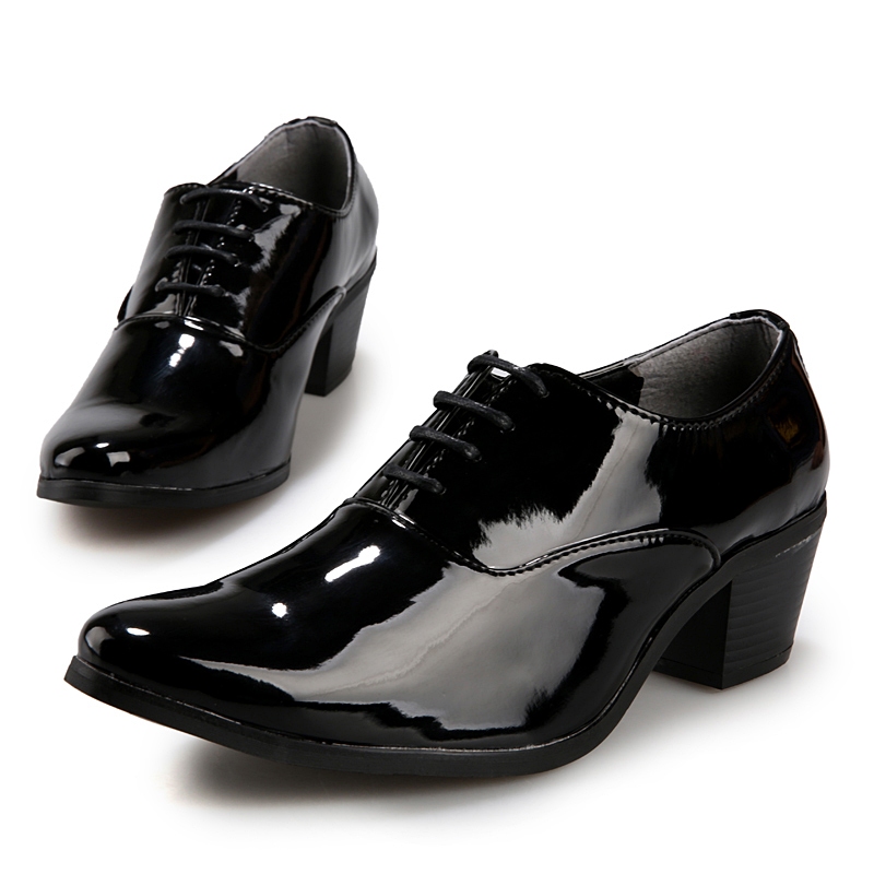 Casual Leather Shoes Wedge Heel Men Fashion Groom Wedding Thick-Soled Heightening 6cm Formal Oxford Work