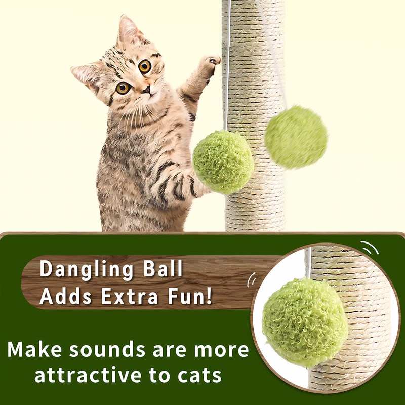 Cat Scratching Post Pillar Scratcher Cat Scratching Pad Play Bed Toy Wood Wear Sisal Simulation Tree with Plush Ball Kucing