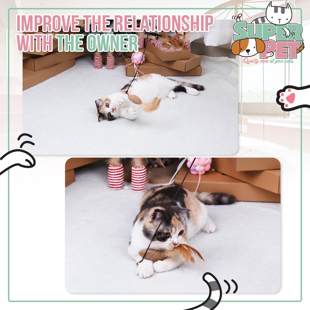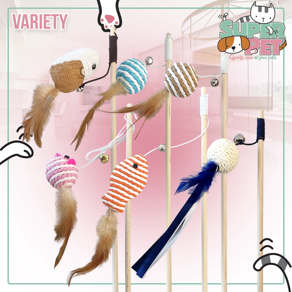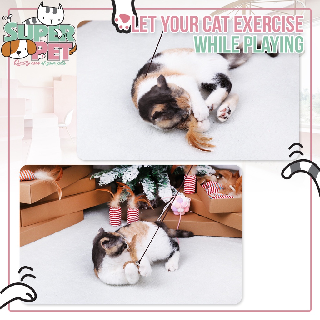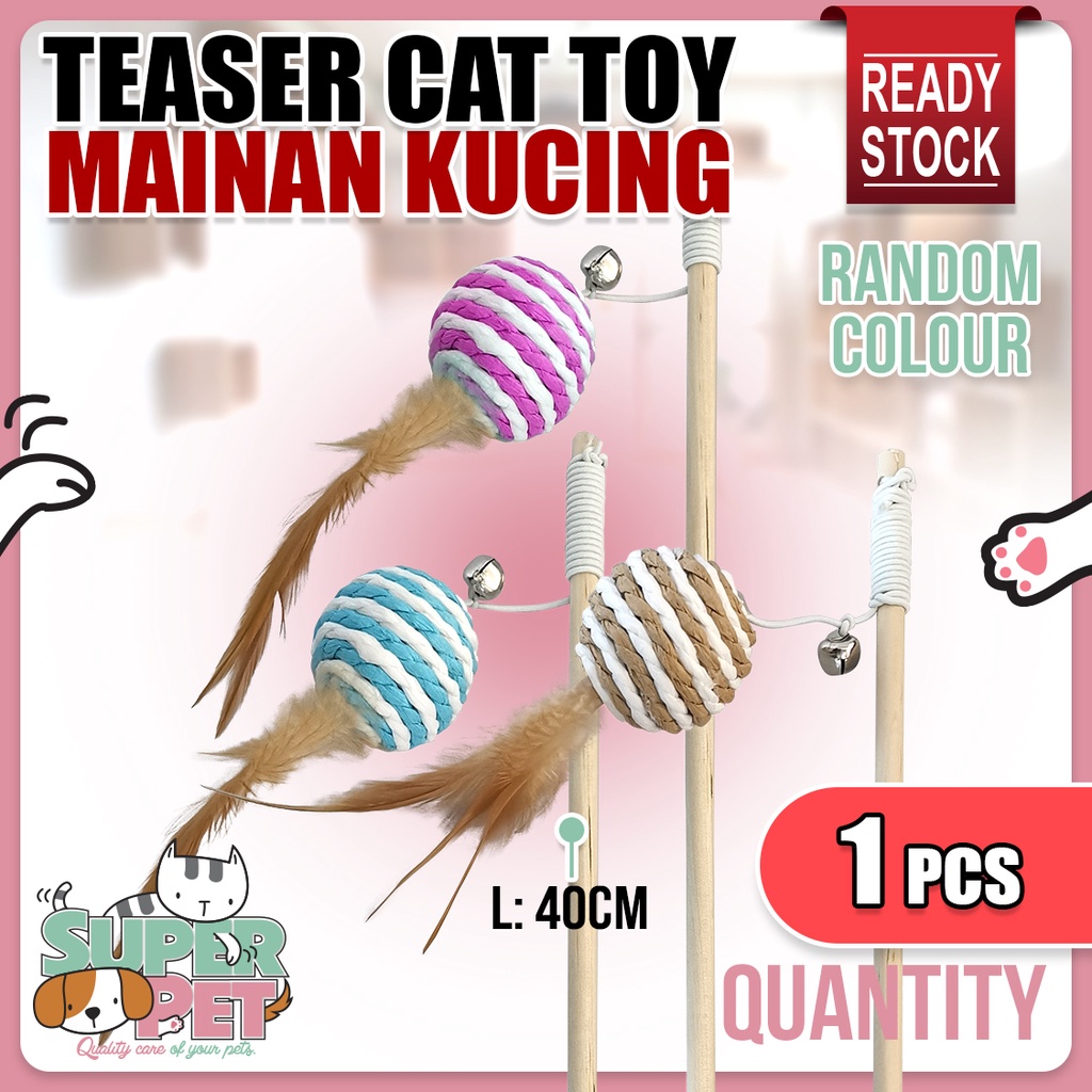 Premium Cat Toy Teaser Stick Wand Teaser Cat Toy Mainan Kucing Ball Bell Scratch 逗猫棒 猫玩具