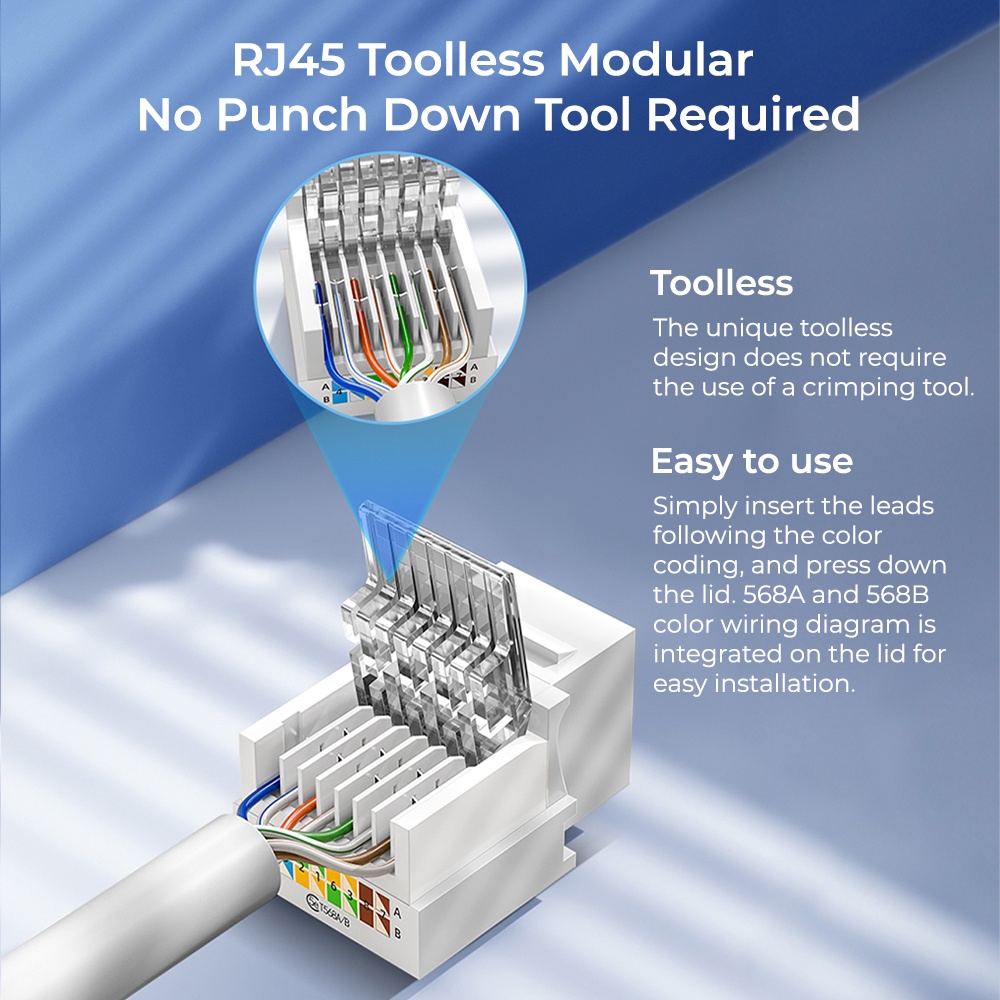 Cat3 Cat5E Cat6 Cat6A Cat7 RJ11 RJ45 Shielded Unshielded With Tools Toolless Keystone Modular Jack