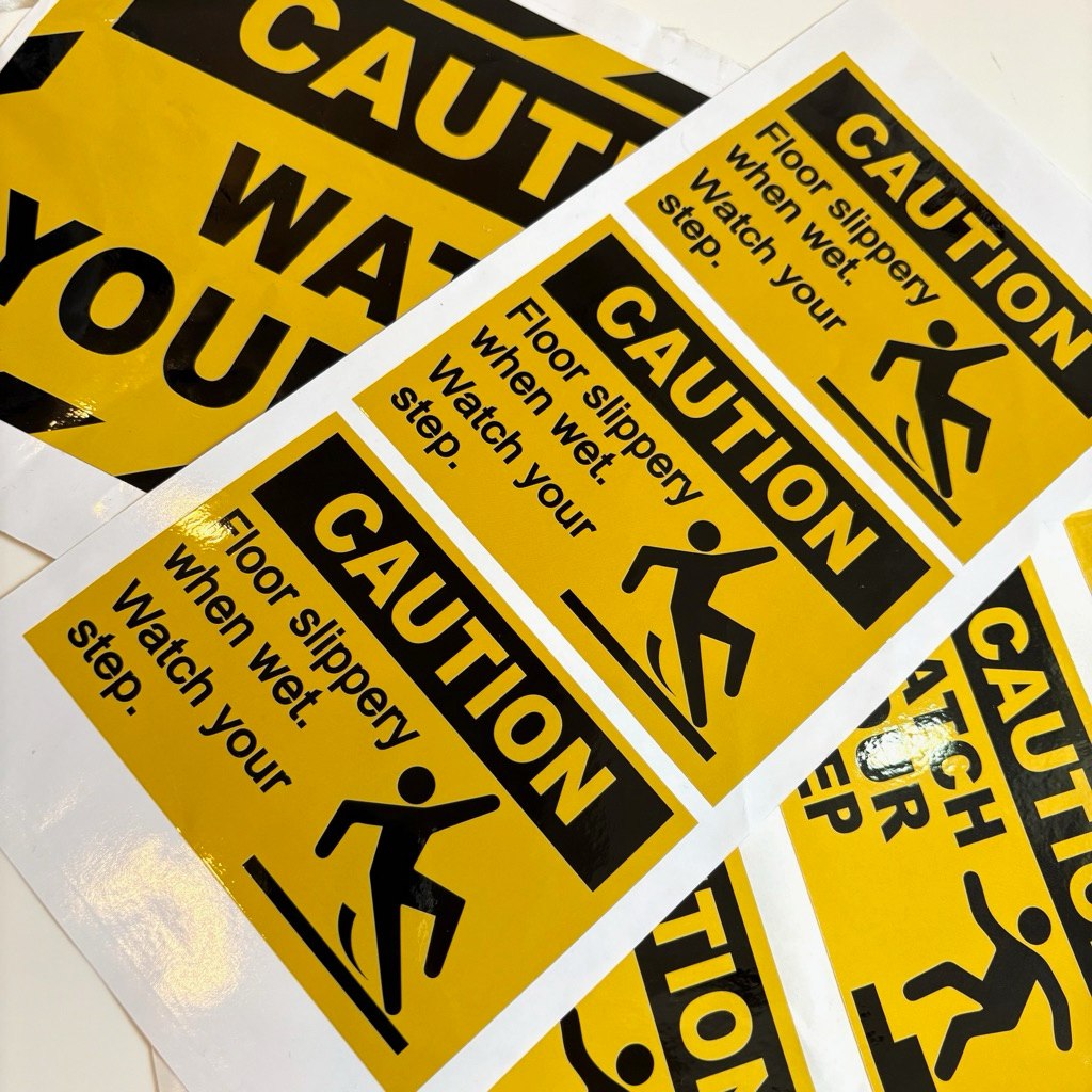 Caution warning label sticker Watch your step floor slippery when wet stickers yellow black rectangle 8x12cm 16x24cm