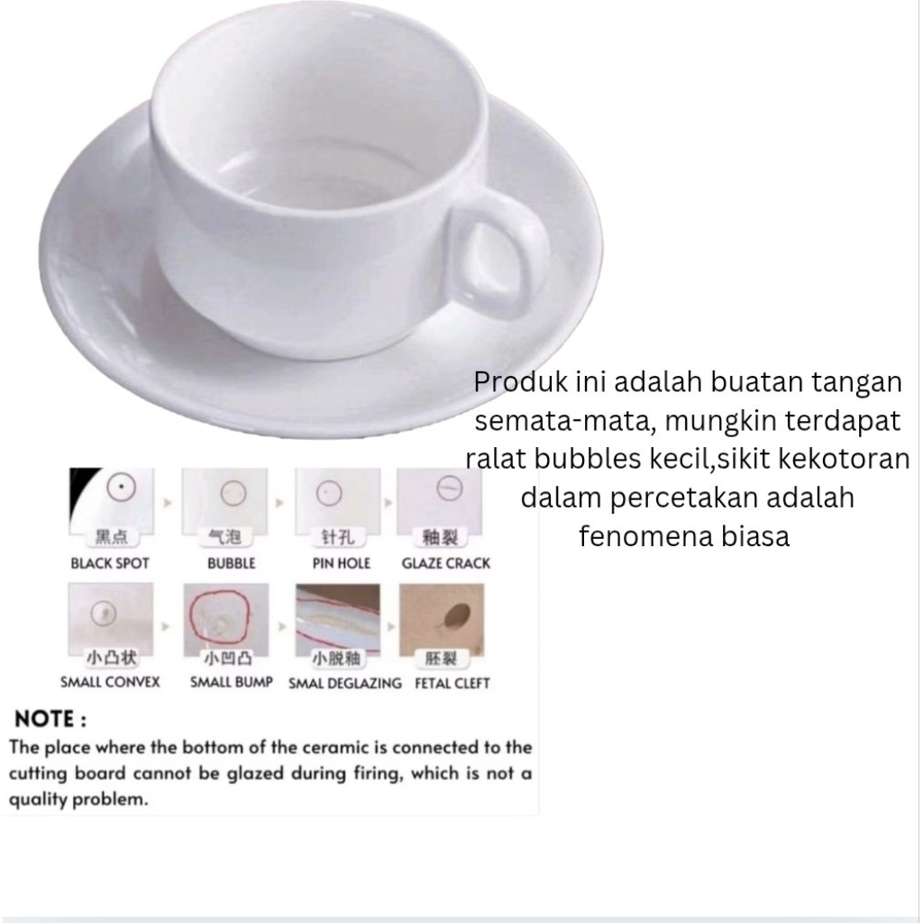 Cawan Putih Kopi Teh White Ceramic Hotel Quality Coffee Cup 220ml Saucer Mug Delu Spoon Tea Set