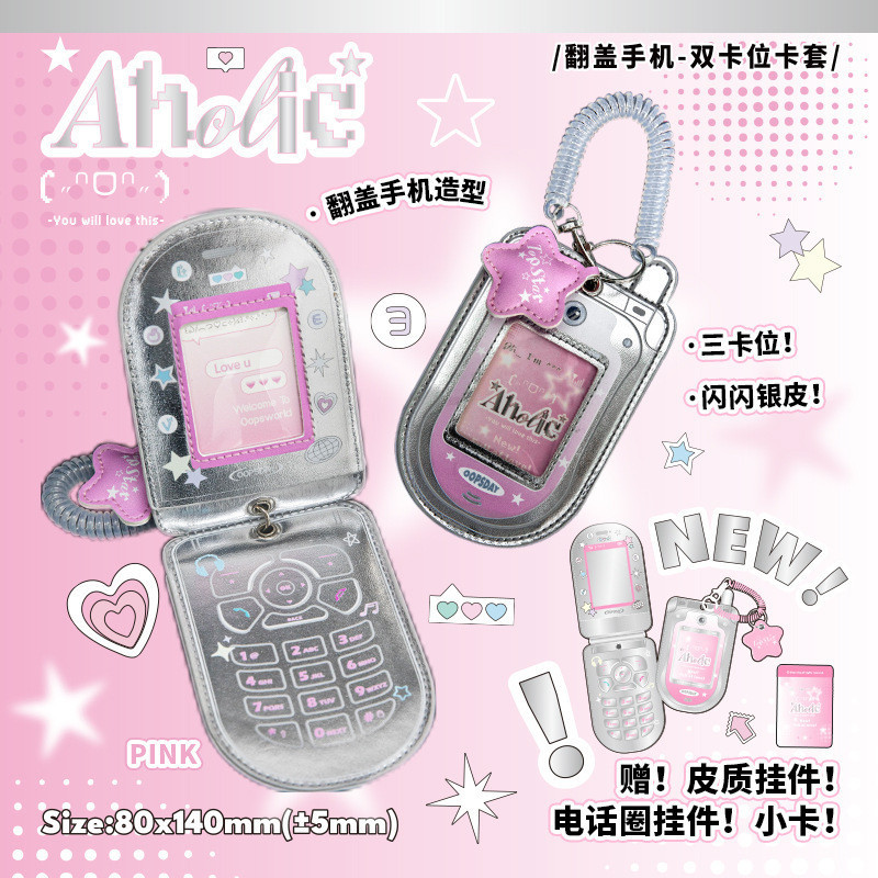 Cdaily|Flip Phone Pickup Holder Silver Retro Card Holder Student Name Tag ID Card Holder Star Chasing Card