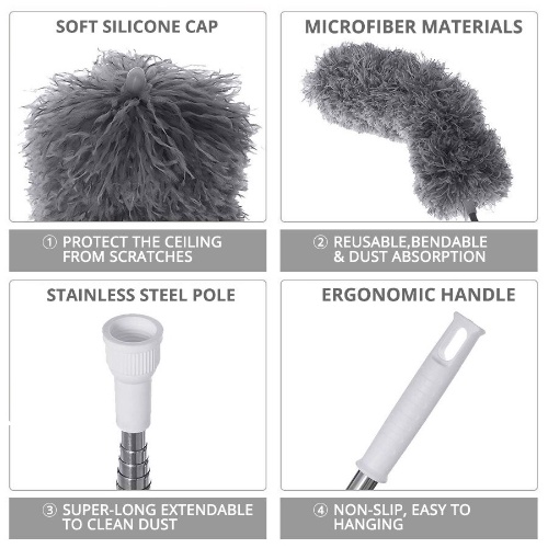 Ceiling Duster Brush Adjustable Telescopic Bending Dust Cleaning Brush Penyapu Sawang Berus Habuk 2.8M