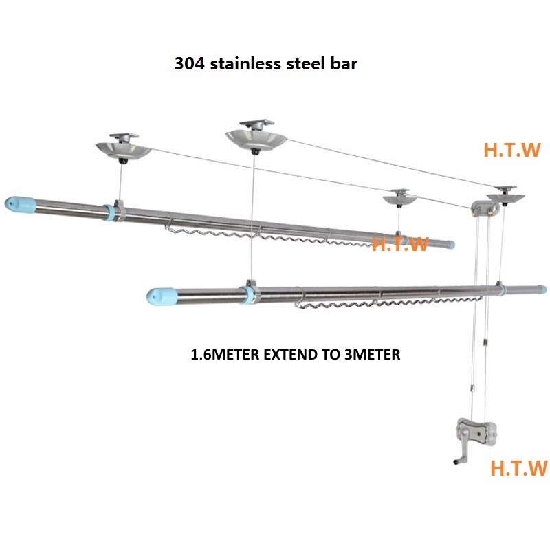Ceiling Lifting Drying Rack / Lifting Clothes Hanger / Ceiling Hanger with Extend Bar / 304 Stainless Steel / Aluminum