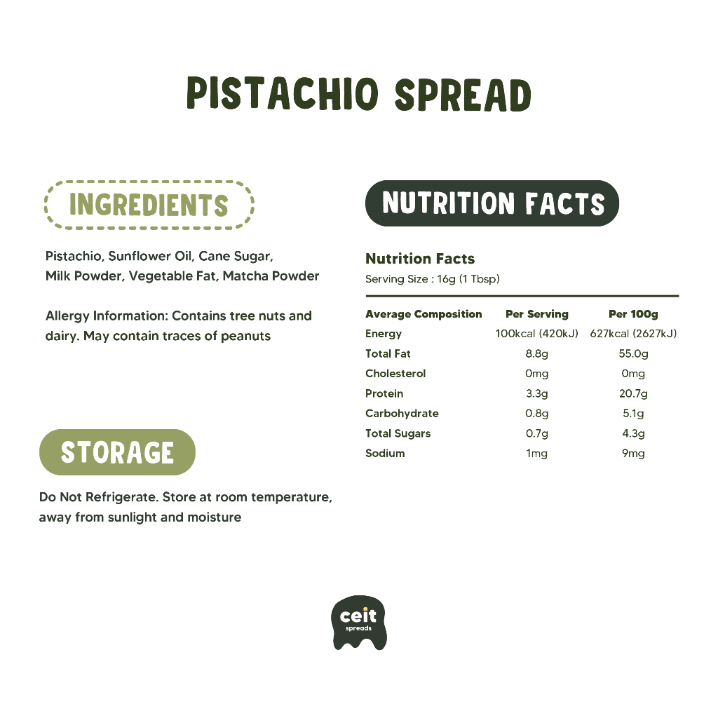 Ceit Spreads Pistachio Spread (HALAL) 130g / Pistachio Butter / Pistachio Jam / Less Sugar