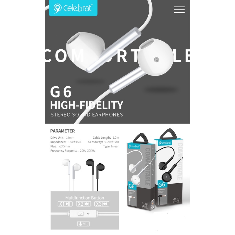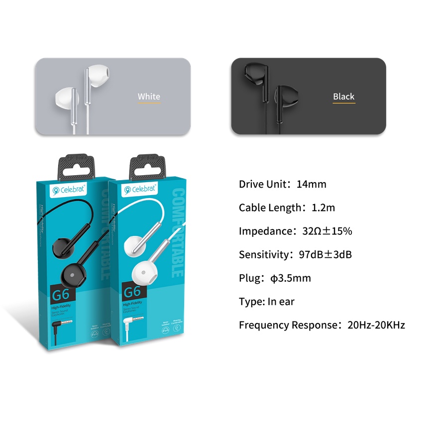 Celebrat G6 Stereo Sound Earphones Stereo Bass Earphone Headphone Wired Earphone G13 G12 C8 Earphone