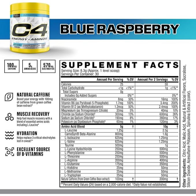 Cellucor C4 Energy + Aminos (30 Servings) - 3in1 Formula, Boosts Energy, Supports Muscle Recovery