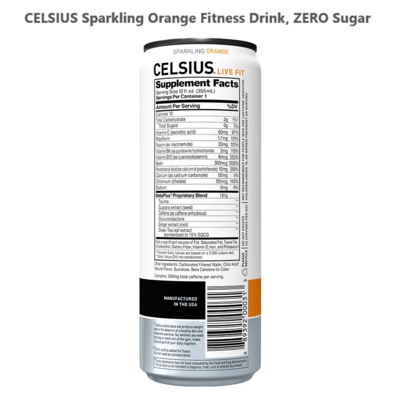 Celsius Live Fit Energy Drink Sparkling Orange, Taurine & Green Tea Extracts, Sugar Free, 4 x 325ml
