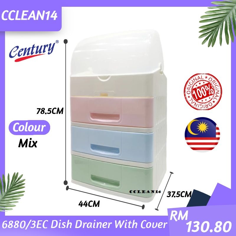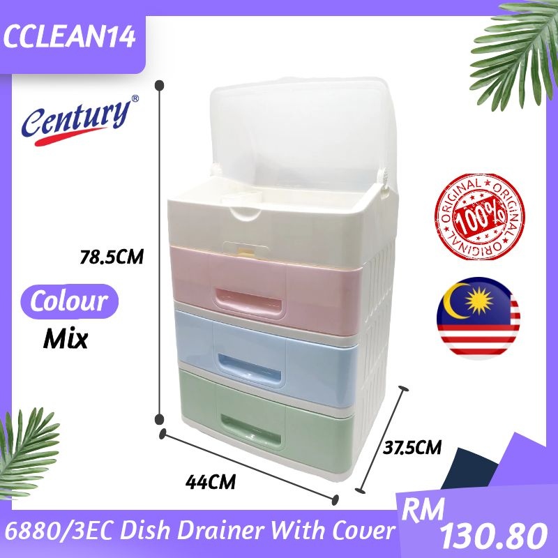 Century Dish Drainer With Cover 3 Tier 6880/3EC Rack Pinggan Mangkuk Besar Tiga Tingkat