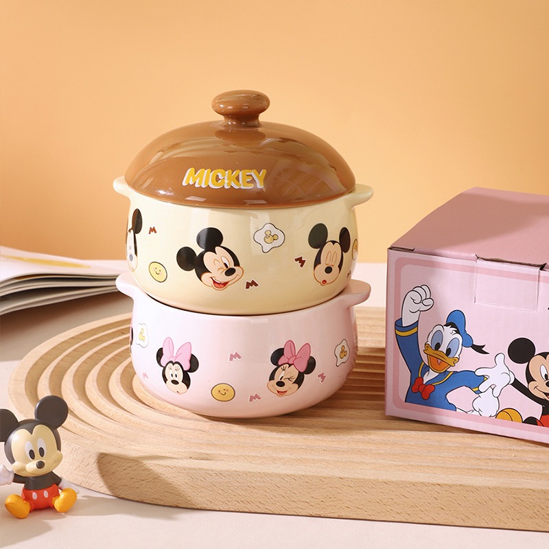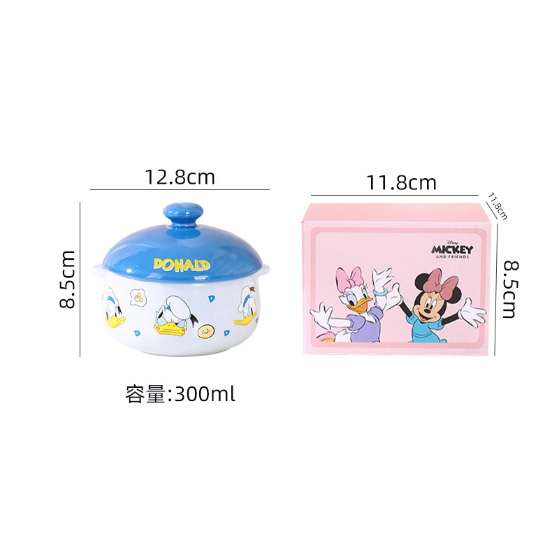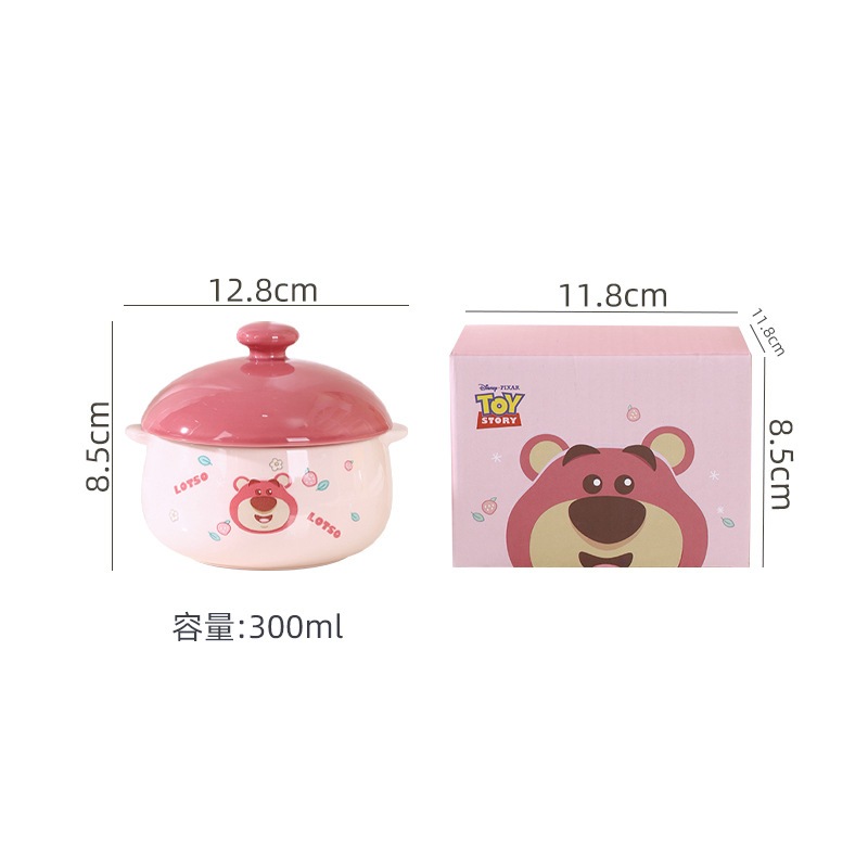 Ceramic Bowl with Lid Mickey Mouse Minnie Mouse Lotso Pooh Donald Duck Character