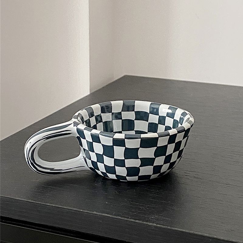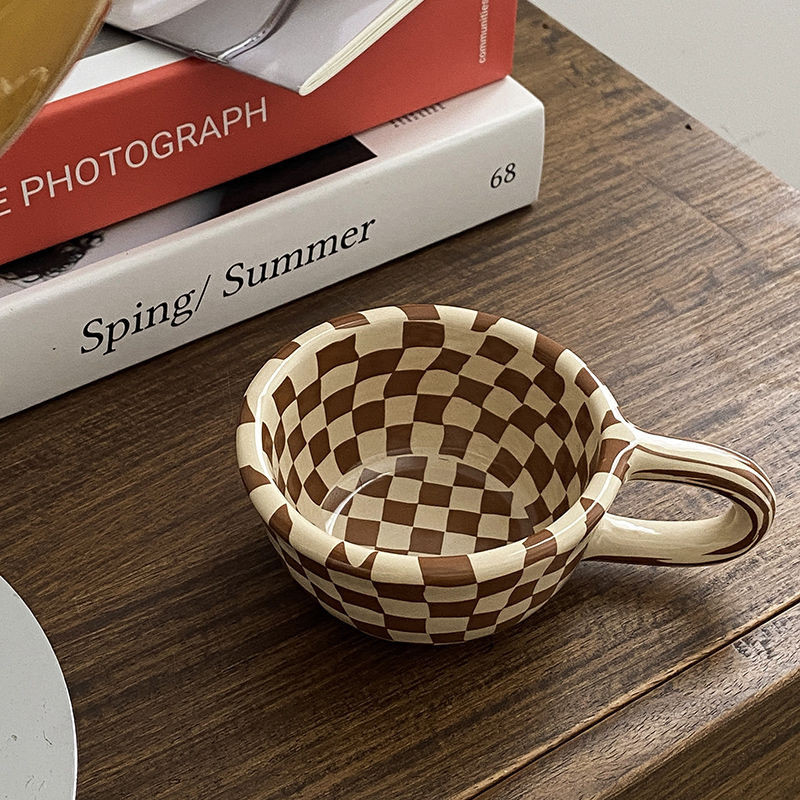 Ceramic Coffee Cup European Retro Checkerboard Mug Light Luxury Design Afternoon Tea