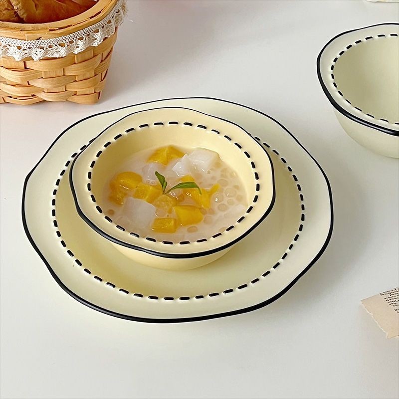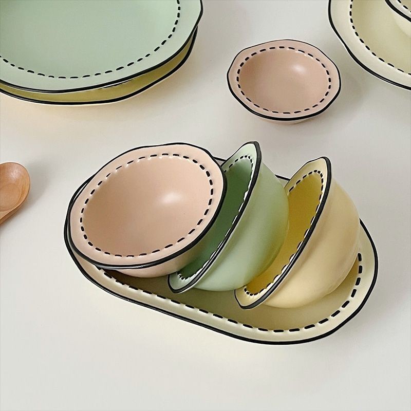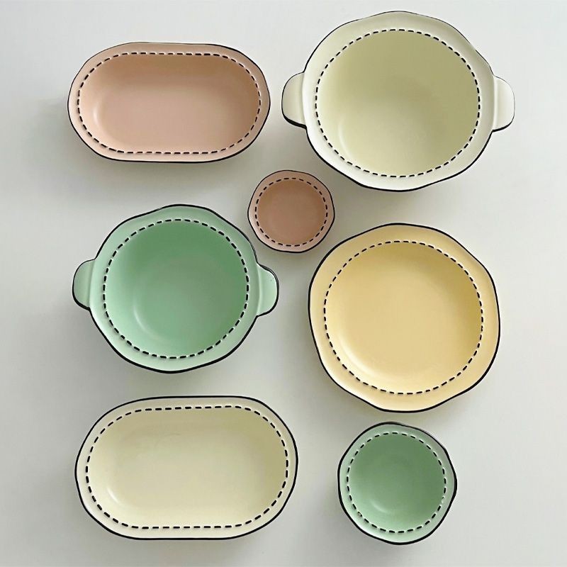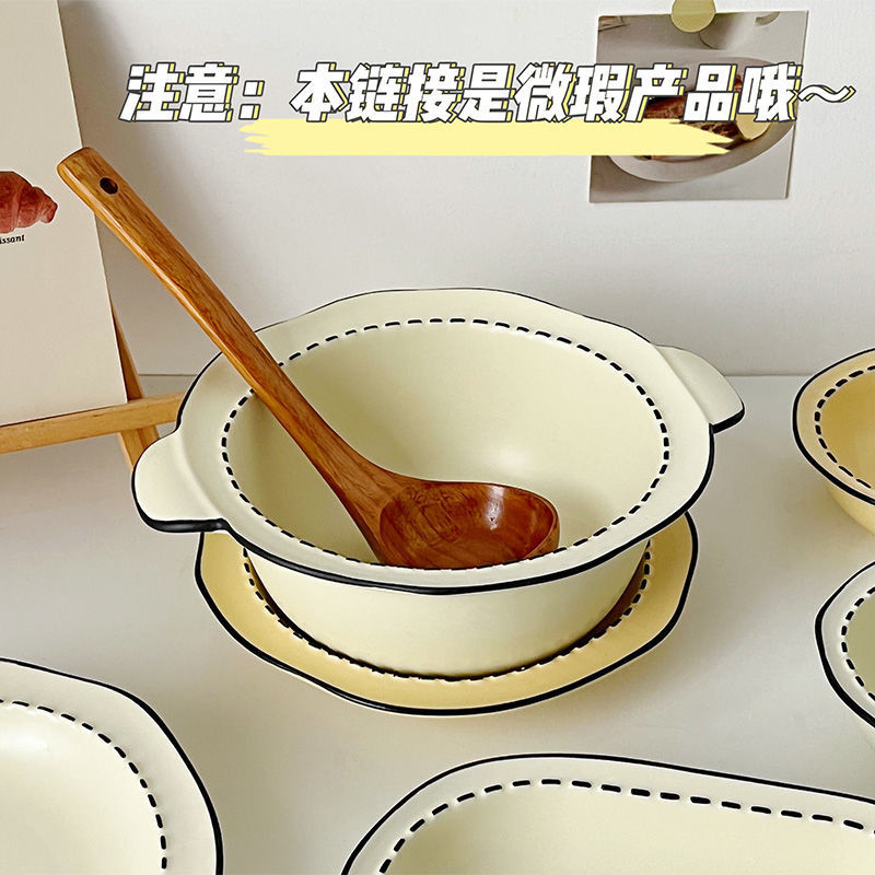Ceramic Deep Plate Panda Rice Bowl Plate Set Large Soup Bowl Oval Dish Plate