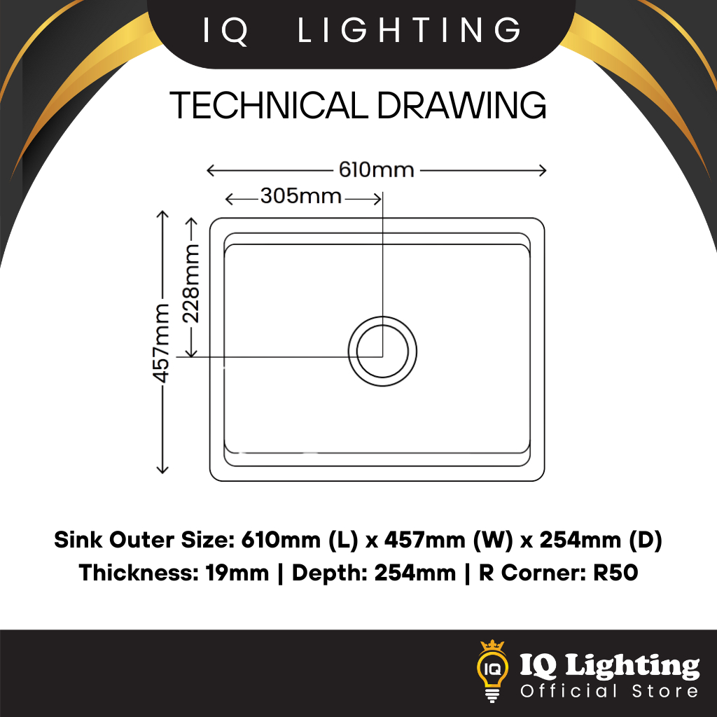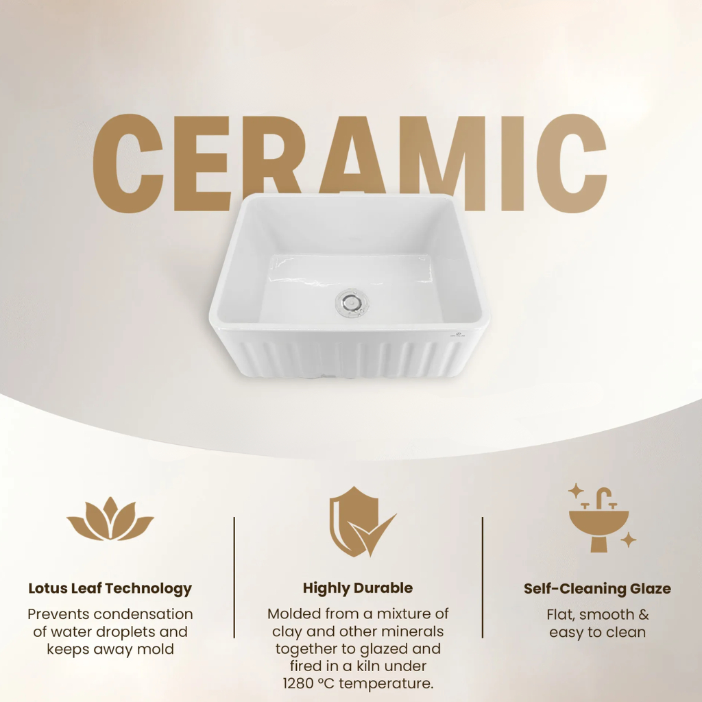 Ceramic Farmhouse Kitchen Sink 610mm Single Bowl Handmade Ceramic Sink Fireclay Reversible Farmhouse Apron-Front Kitchen