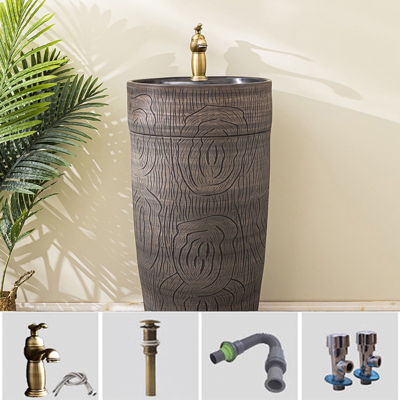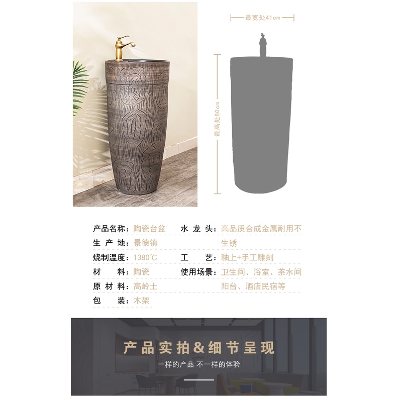 Ceramic Integrated Column Wash Basin Home Bathroom Washbasin Outdoor Courtyard Basin Floor-Standing Pedestal Basin14
