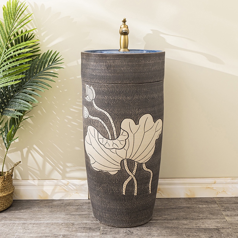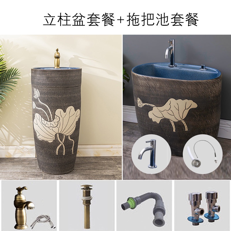 Ceramic Integrated Column Wash Basin Home Bathroom Washbasin Outdoor Courtyard Basin Floor-Standing Pedestal Basin5